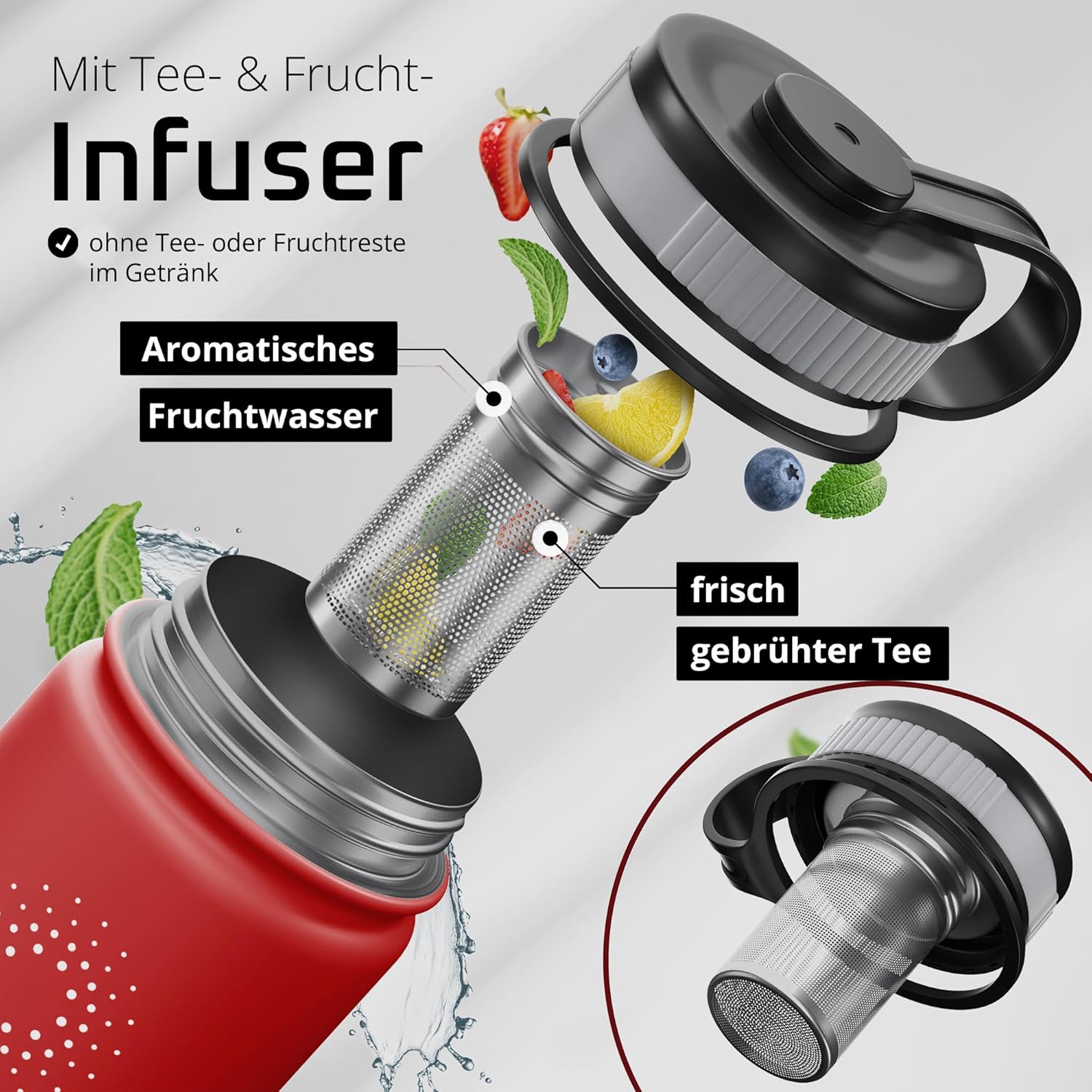 • Премиум инфузер, комплект за чай и плодове – Превърнете бутилката си за пиене в инфузер за чай или плодове за нула време и се насладете на прясно приготвен чай или пресни плодови шприцове навсякъде – без остатъци от чай или плодове да попаднат в напитката ви.