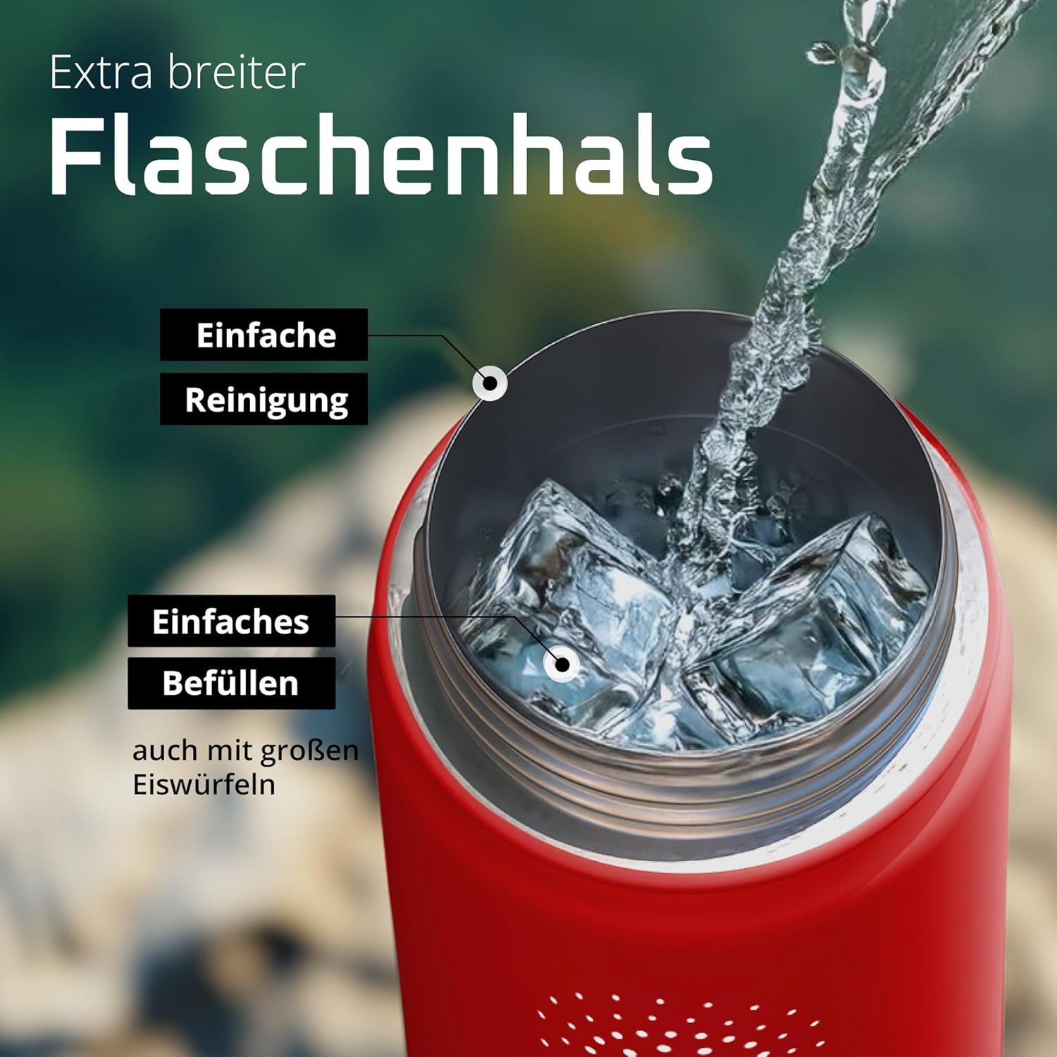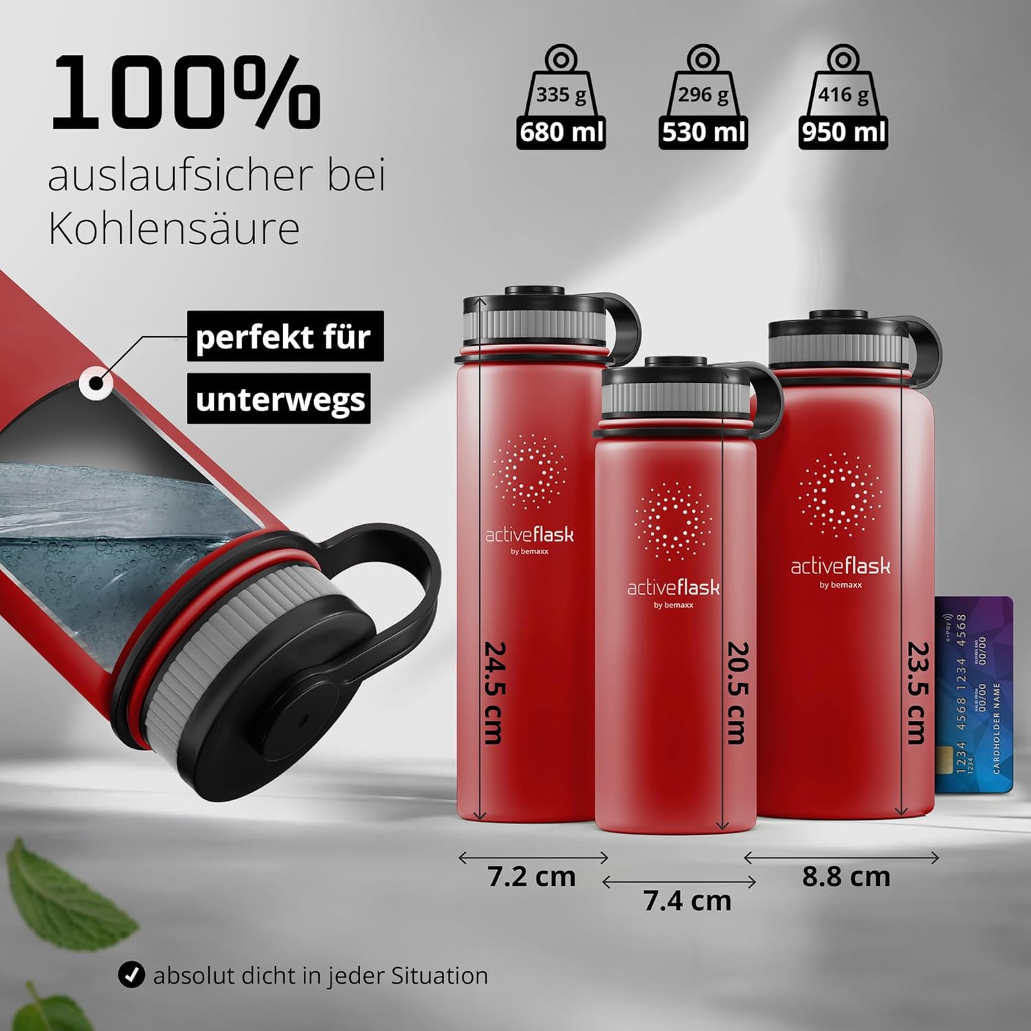 • Победител в теста: 12 часа топло и 25 часа студено | Вземете оригинала в обновен дизайн – двустенната вакуумно изолирана бутилка за пиене от неръждаема стомана с 3 различни капачки за ежедневна употреба, спорт и дейности на открито. Височина: 25 см, диаметър 9,3 см, обем: 950 мл. Тегло: 416 г. (*Настоящ победител в сравнението (категории „бутилки за пиене“ и „бутилки за пиене от неръждаема стомана“) atvergleich.org от 02/2017).