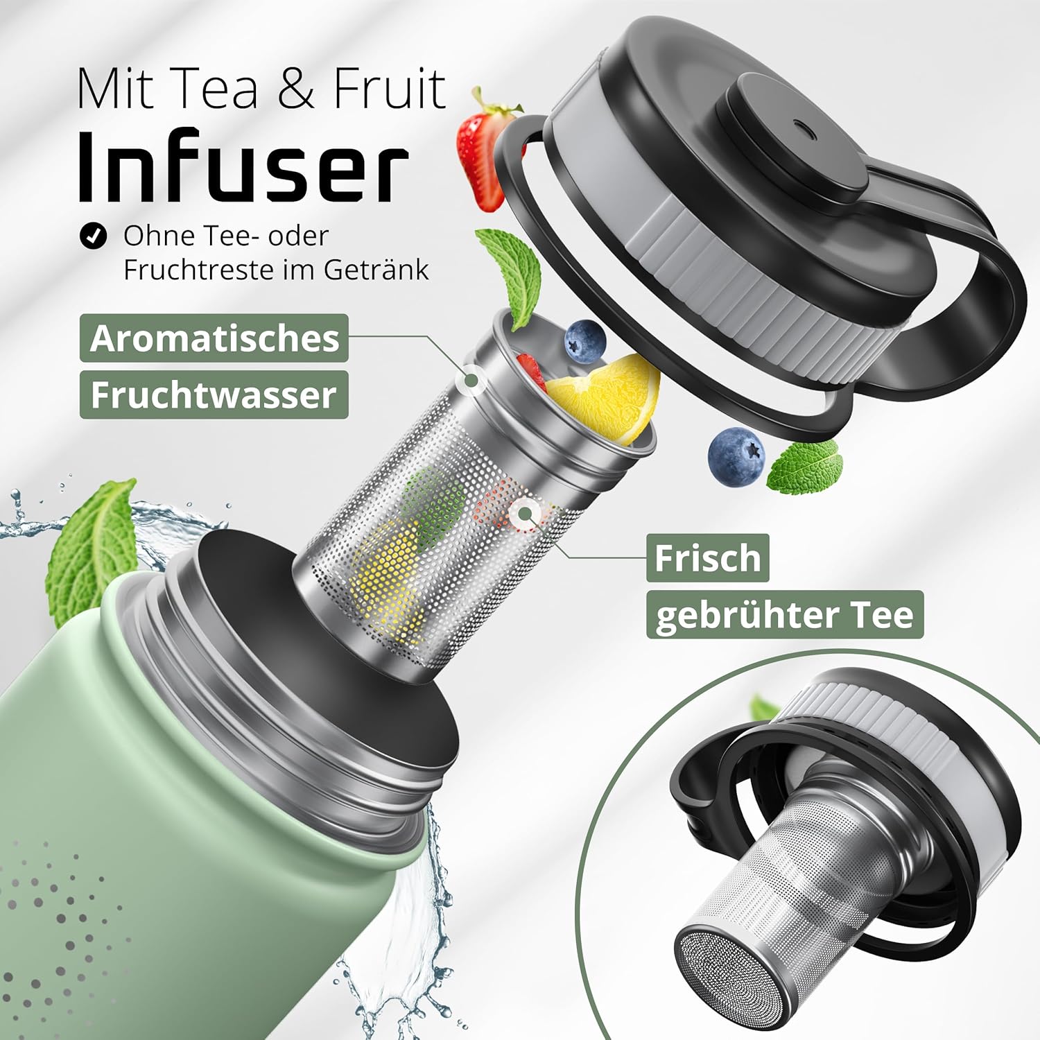• Премиум инфузер, комплект за чай и плодове – Превърнете бутилката си за пиене в инфузер за чай или плодове за нула време и се насладете на прясно приготвен чай или пресни плодови шприцове навсякъде – без остатъци от чай или плодове да попаднат в напитката ви.