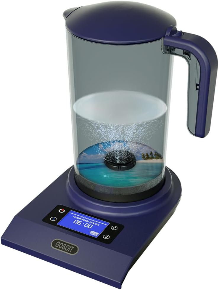 • Голям капацитет 3.2000 мл/70 течни унции, подходящ за семейна употреба: Каната за водородна вода GOSOIT е проектирана с вместимост 2000 мл/70 течни унции, която може да отговори на нуждите от пиене за цялото ви семейство.
