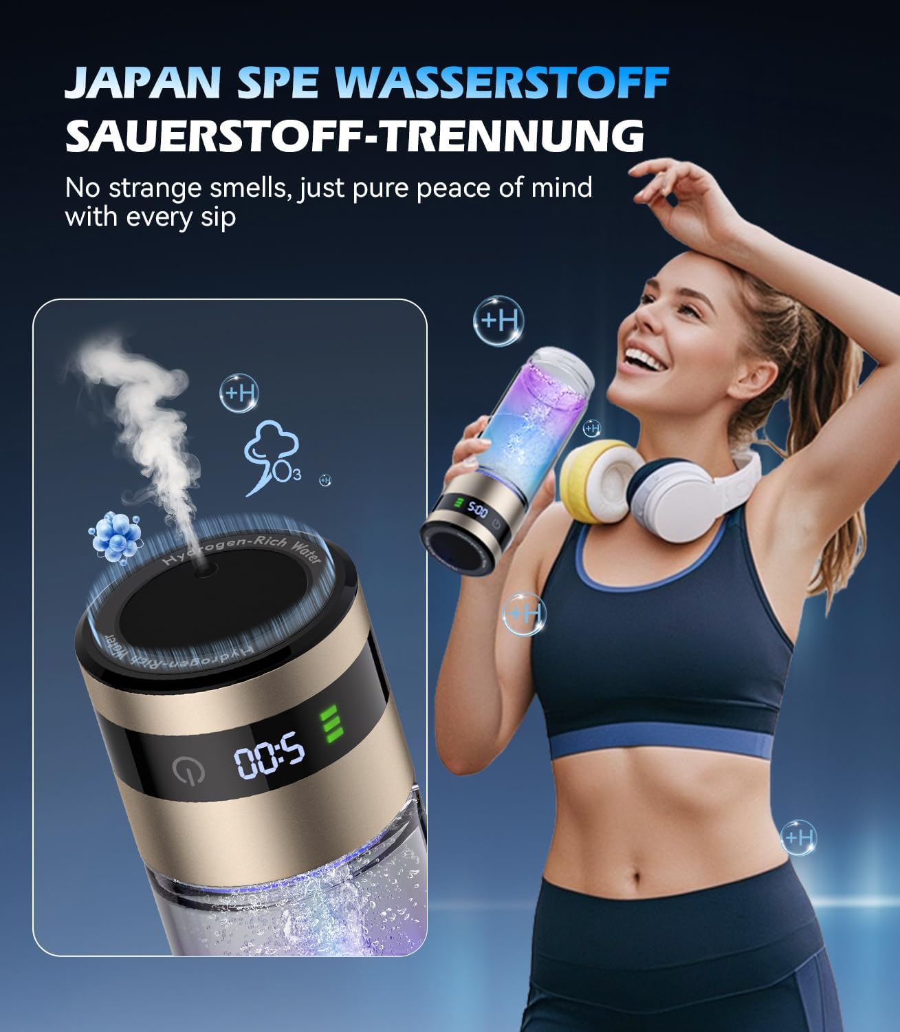 • 0 хлор, 0 озон и 0 тежки метали: благодарение на патентовано ядро ​​и 50 строги процеса на тестване, нашето устройство премахва хлора, озона и тежките метали от водата. Само за 3 минути то трансформира обикновената питейна вода в богата на водород, алкална вода и ви предлага чиста и здравословна питейна вода. Доказано е, че богатата на водород вода намалява оксидативния стрес, насърчава регенерацията на клетките и общото ви здраве.