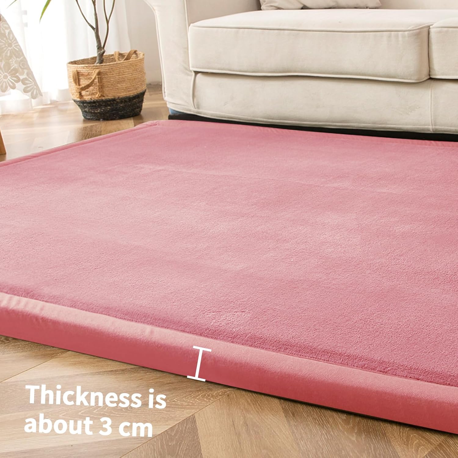 BYBYME Бебешка постелка за пълзене, коралова кадифена постелка, детско килимче - изключително дебело 3 см и меко килимче за игра - като килимче за детска стая, бебешка постелка за игра, одеяло за пълзене (розово, 150x200 см)