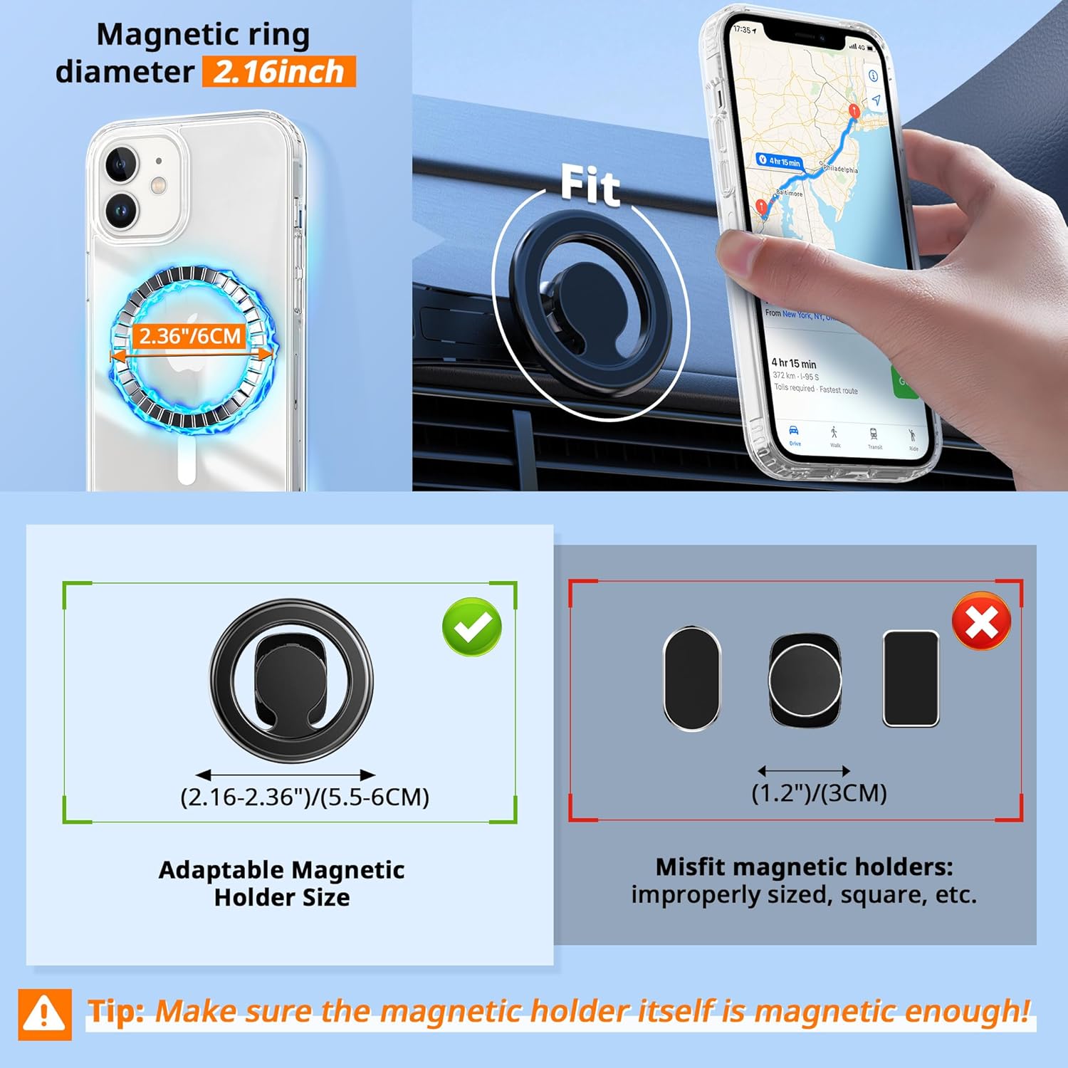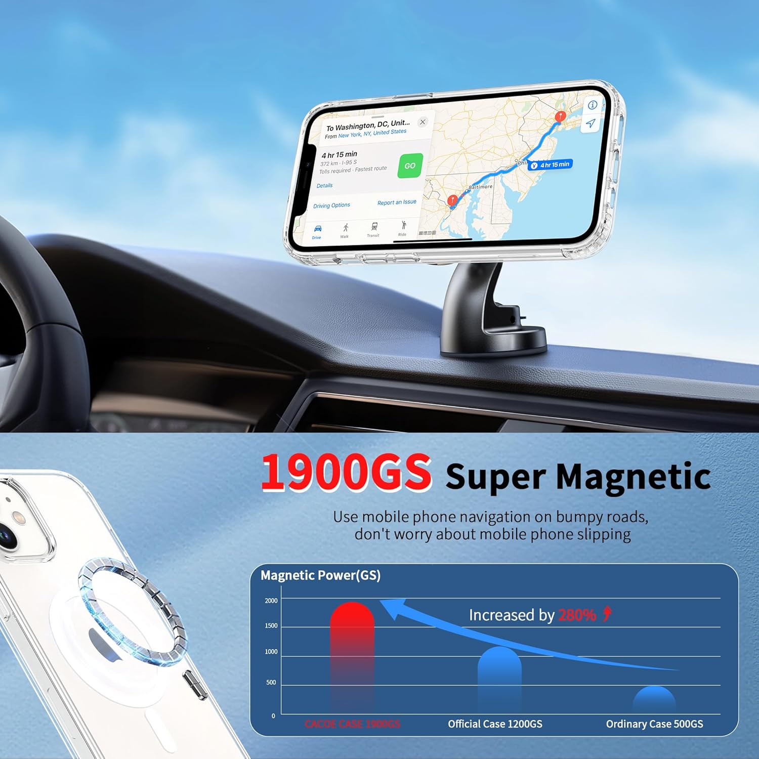 • Силен магнетизъм: Магнитният калъф за iPhone 15 е оборудван с 37 свръхсилни магнита N52, чиято магнитна сила е 2400 GS – седем пъти по-силна от тази на обикновените магнити. Следователно, той няма да падне, дори ако го разклатите енергично по време на зареждане. Съвместим е с MagSafe, магнитни портфейли, магнитни стойки за кола и магнитни зарядни устройства.