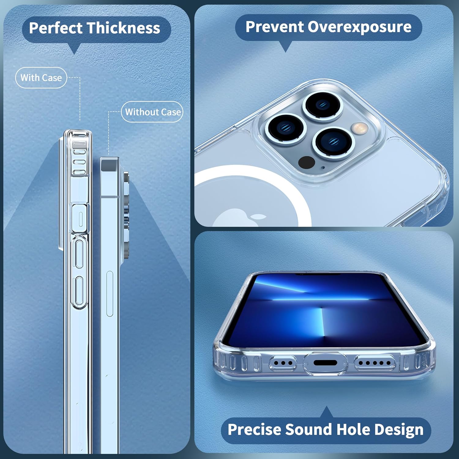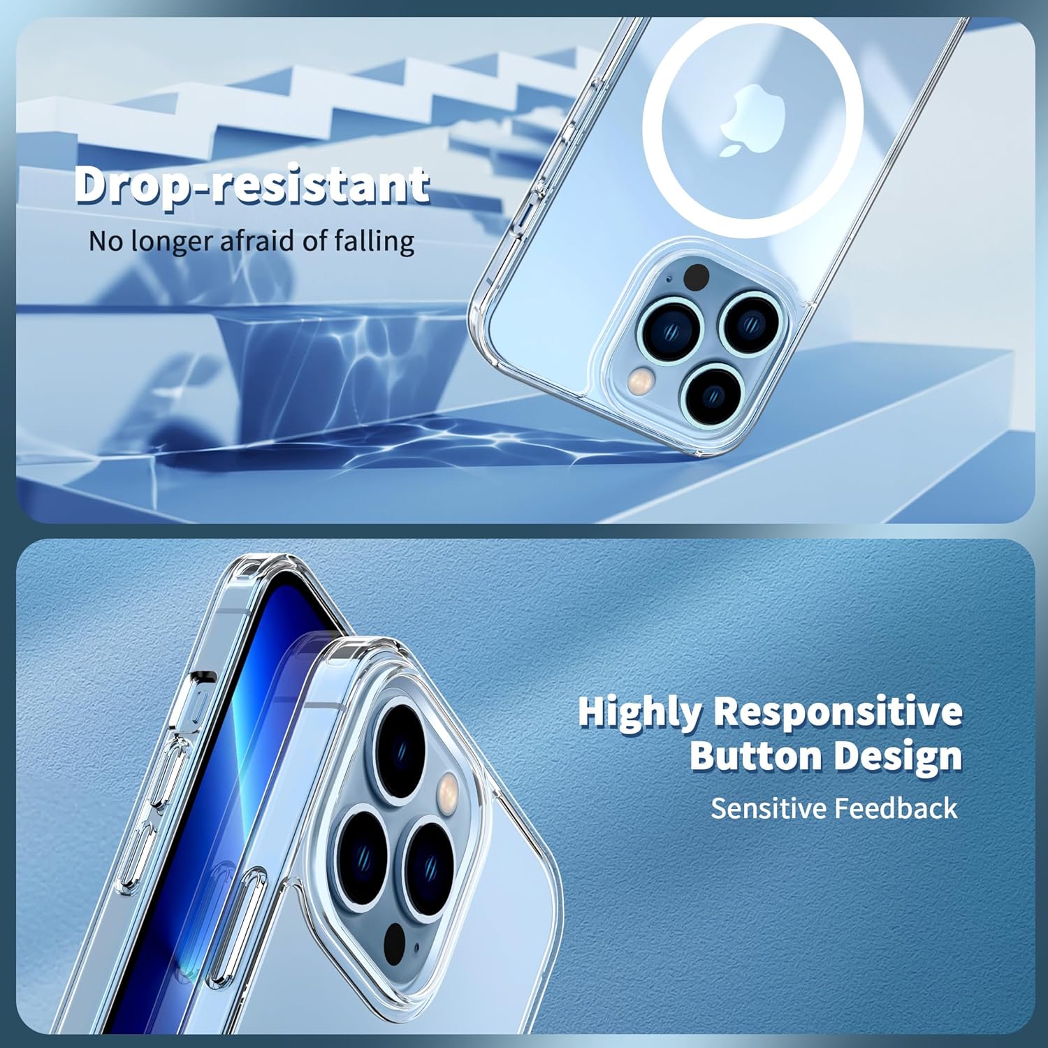 CACOE Магнитен калъф за iPhone 13 Pro 6.1 инча, съвместим с MagSafe, прозрачен матов калъф за мобилен телефон, удароустойчив, устойчив на надраскване, защитен калъф