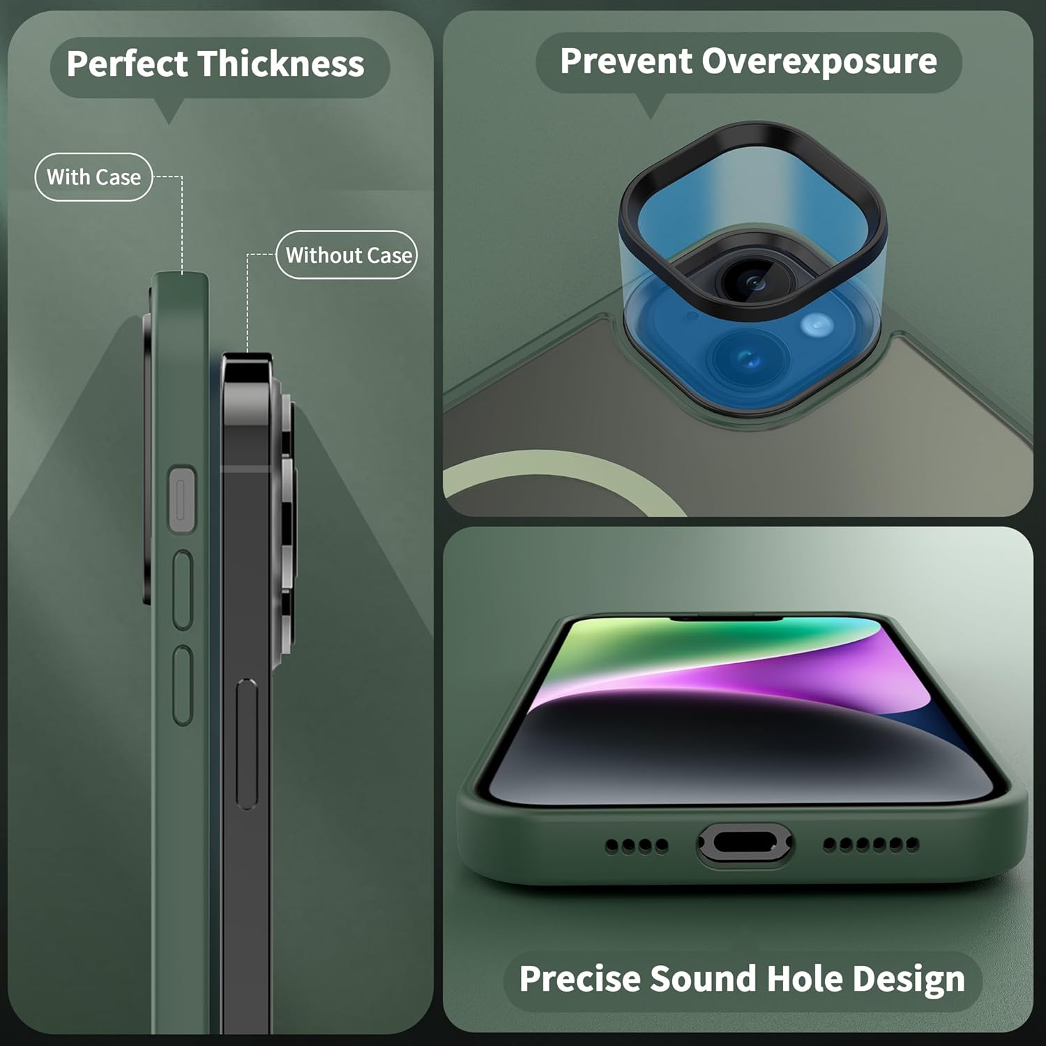 CACOE Магнитен калъф за iPhone 13/14 6.1 инча, съвместим с MagSafe, прозрачен матов калъф за мобилен телефон, удароустойчив, устойчив на надраскване, защитен калъф