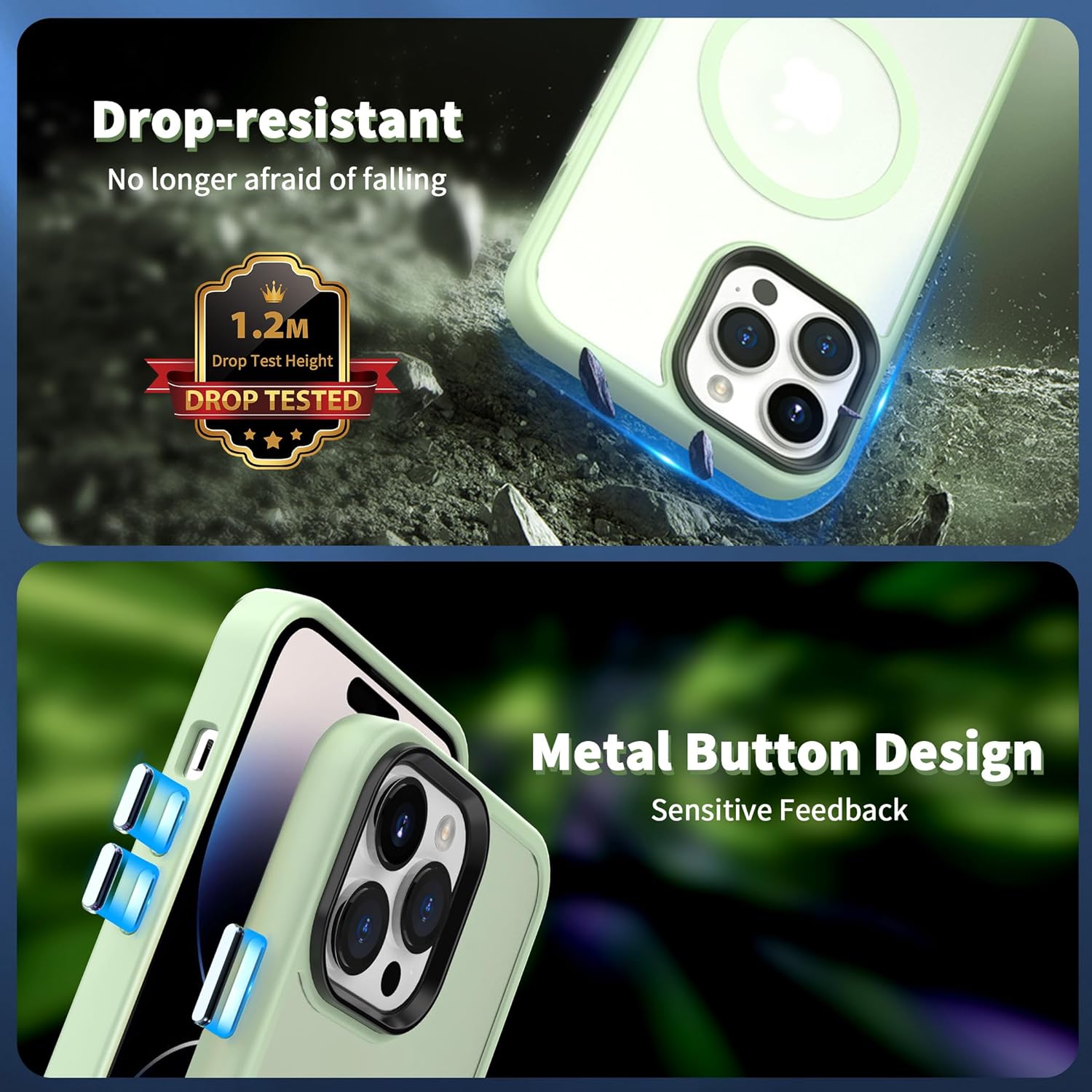 CACOE Магнитен калъф за iPhone 14 Pro 6.1 инча, съвместим с MagSafe, прозрачен матов калъф за мобилен телефон, удароустойчив, устойчив на надраскване, защитен калъф