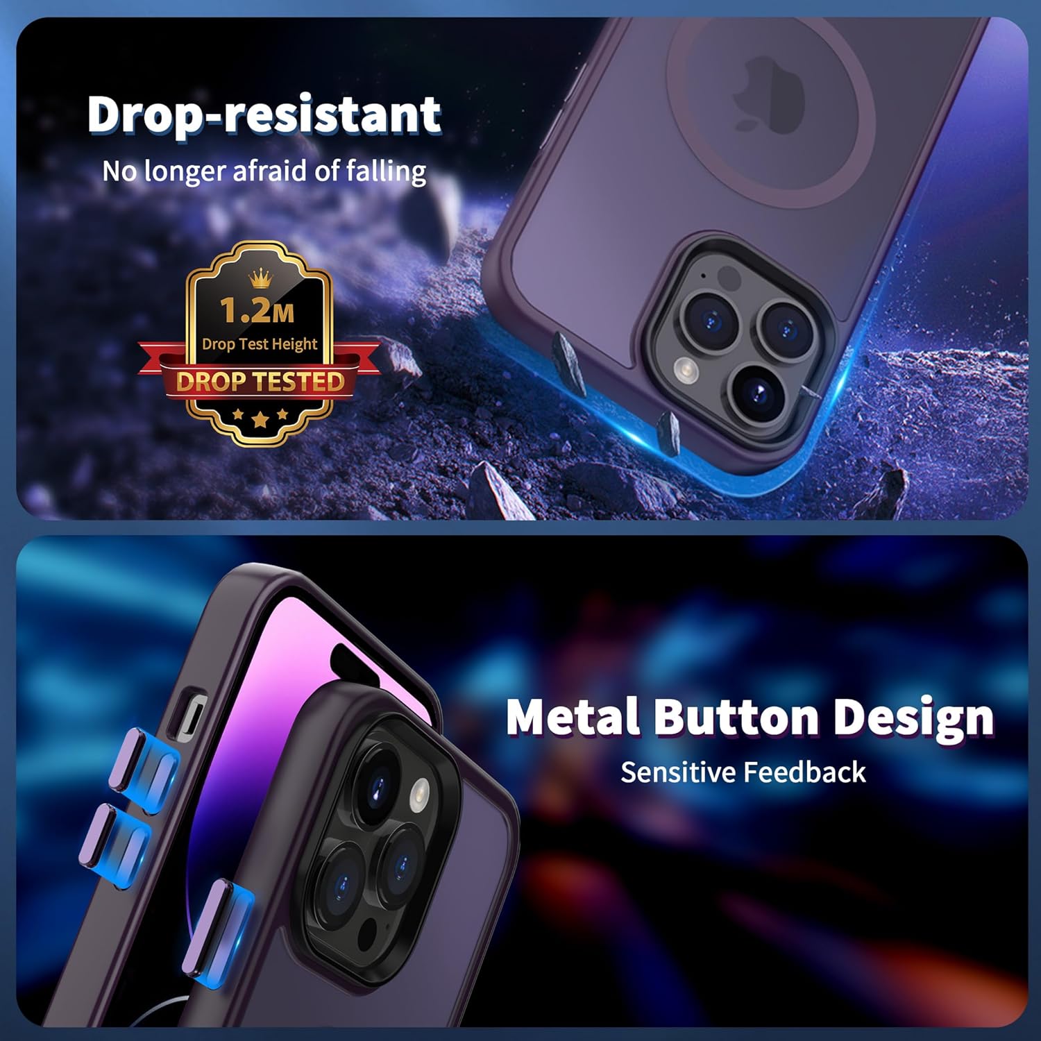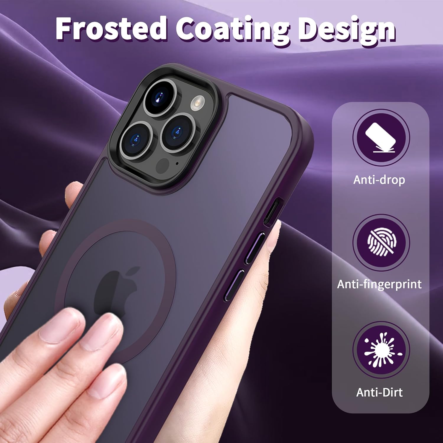 • Защита от 3 м, отговаряща на военни стандарти: Преминава тестове за падане и може да издържи на падания от височина до 3 м. Този матов заден капак за iPhone 15 е изработен от твърд поликарбонат (PC) с гъвкави, абсорбиращи ударите термопластични полиуретанови (TPU) подложки по краищата и разполага с четири въздушни възглавници в ъглите, които абсорбират ударите, предотвратявайки случайни падания, сблъсъци и надрасквания.
