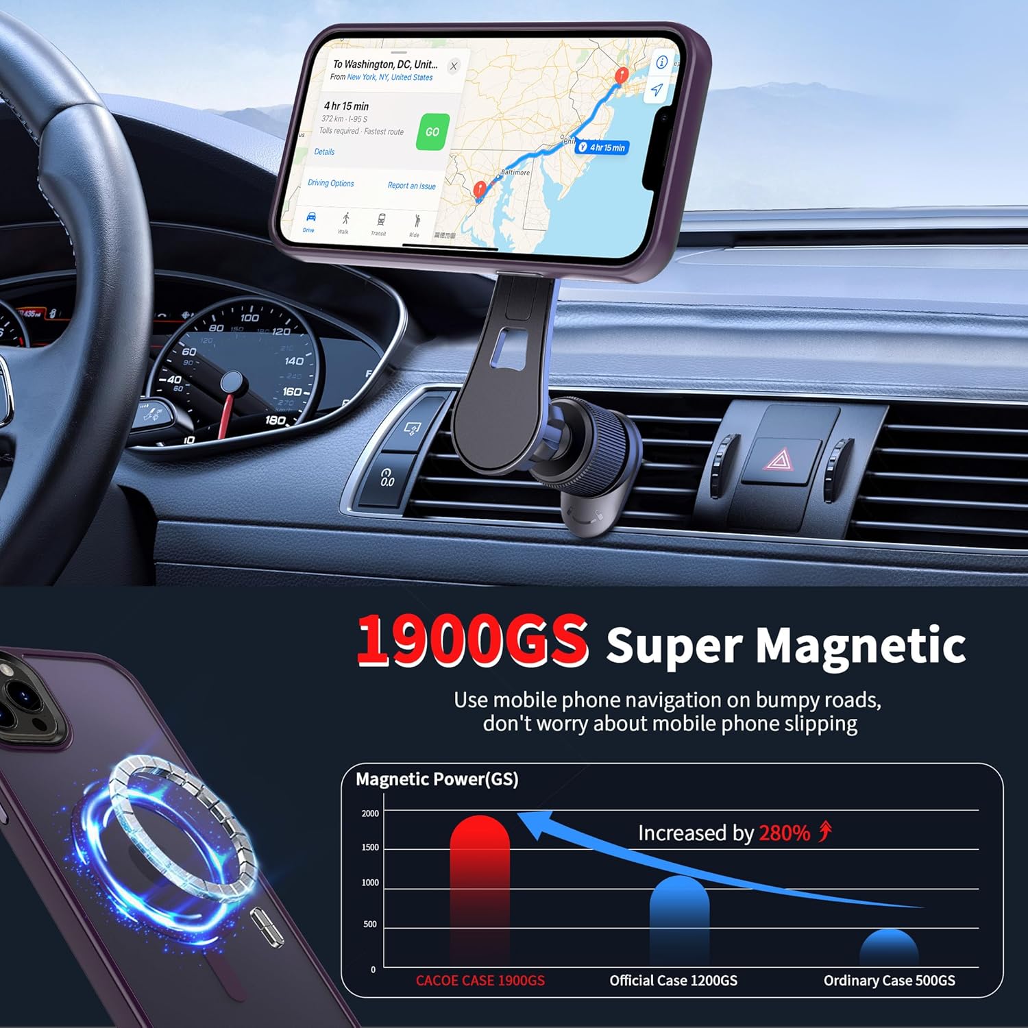 • Силен магнетизъм: Магнитният калъф за iPhone 15 е оборудван с 37 свръхсилни магнита N52, чиято магнитна сила е 2400 GS – седем пъти по-силна от тази на обикновените магнити. Следователно, той няма да падне, дори ако го разклатите енергично по време на зареждане. Съвместим е с MagSafe, магнитни портфейли, магнитни стойки за кола и магнитни зарядни устройства.