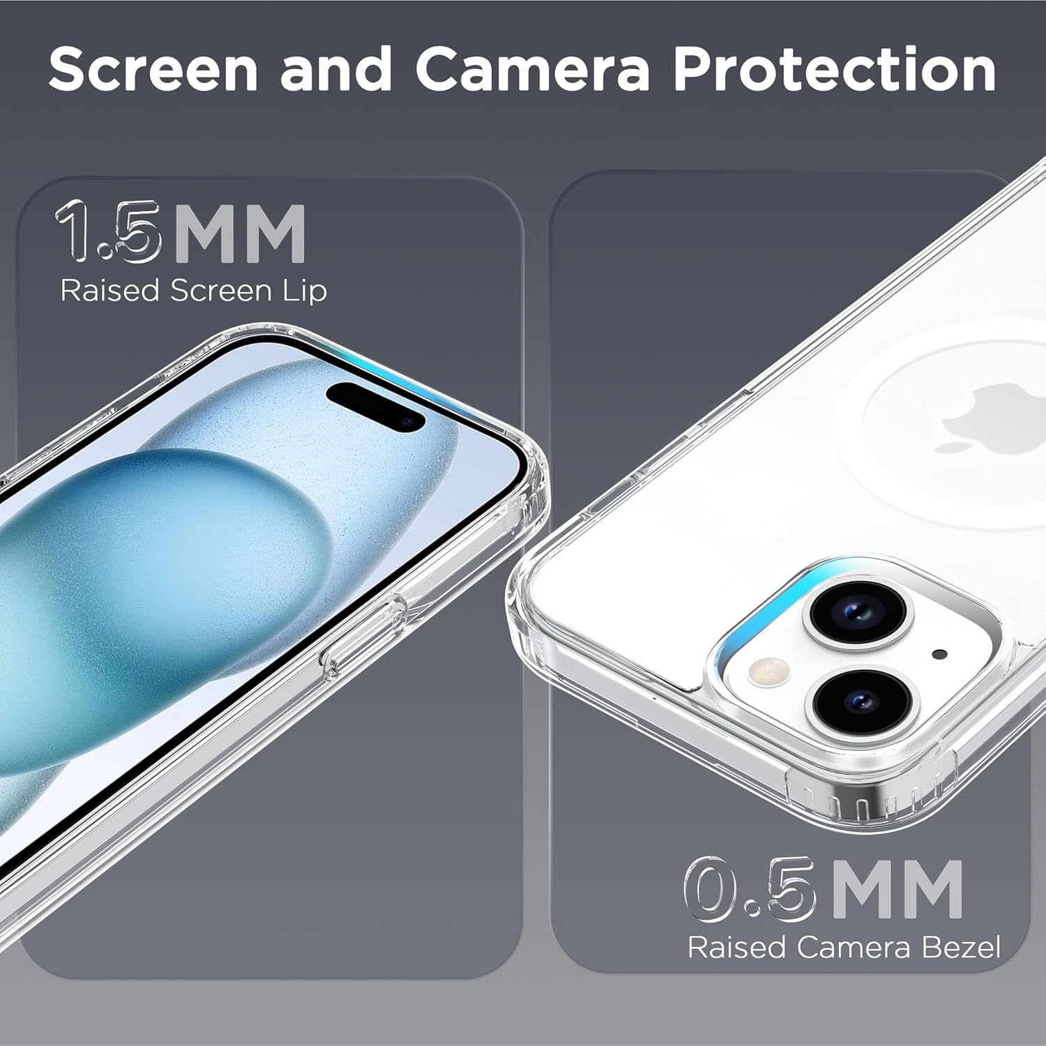CACOE Магнитен калъф за iPhone 14/15 Plus 6.7 инча, съвместим с MagSafe, прозрачен матов калъф за мобилен телефон, удароустойчив, устойчив на надраскване, защитен калъф