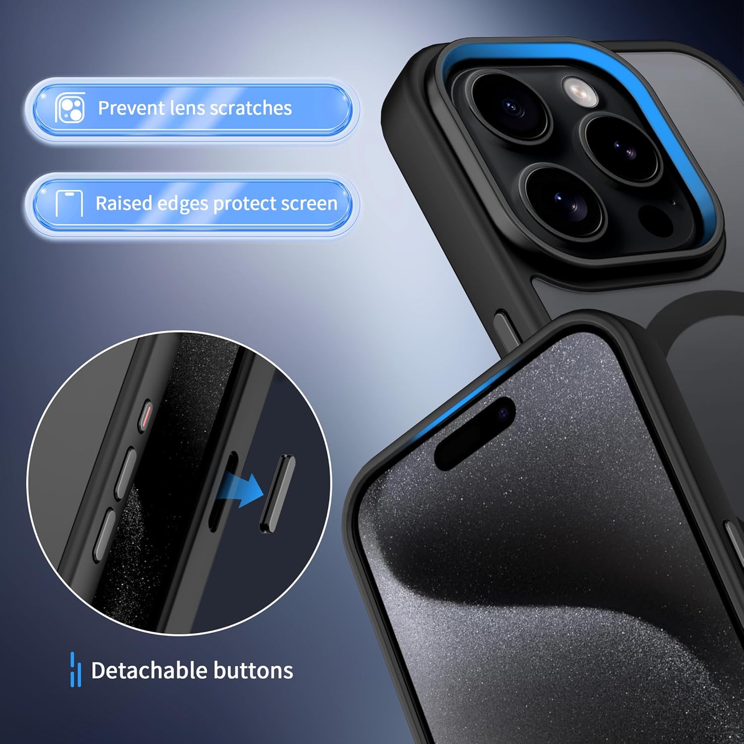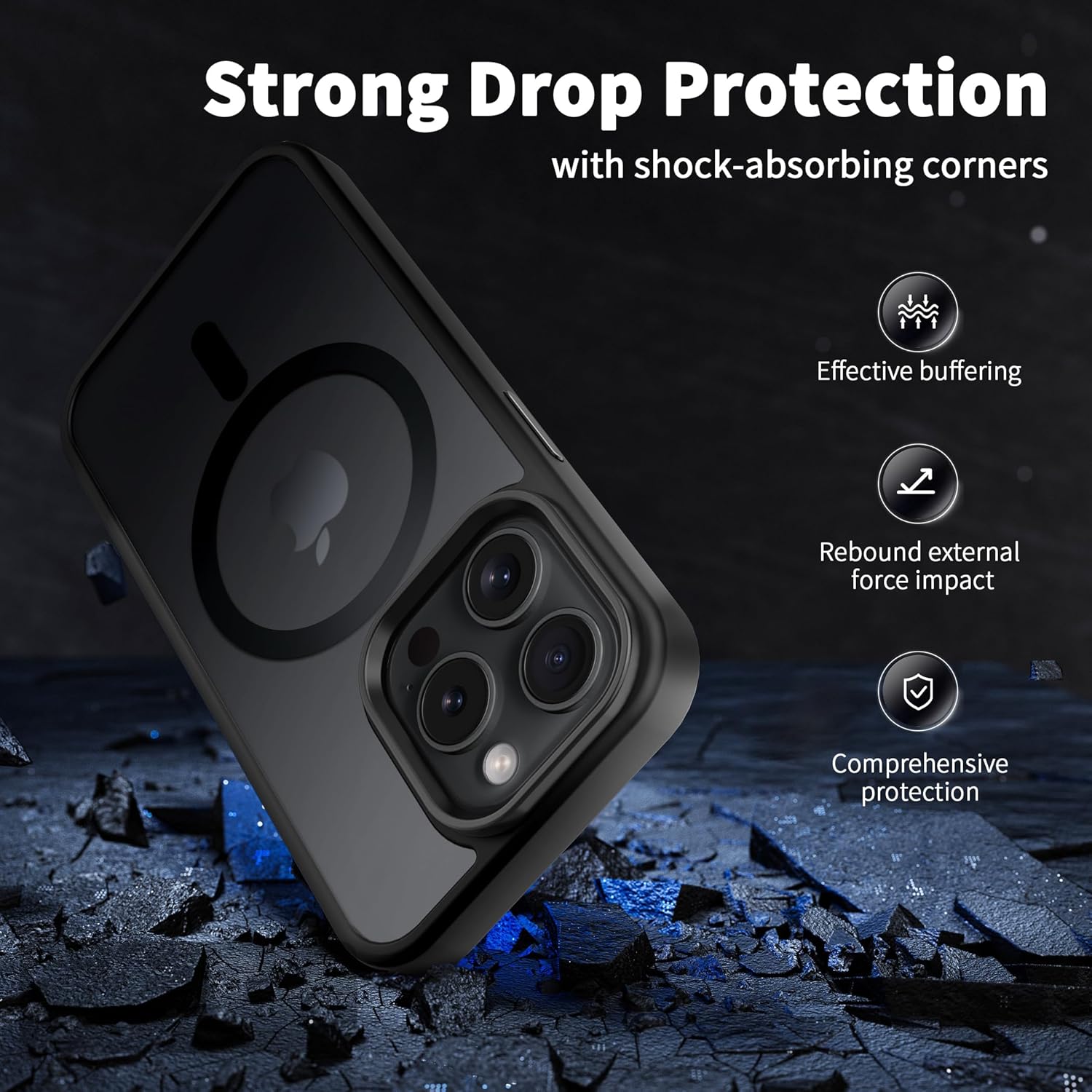 CACOE Магнитен калъф за iPhone 15 Pro 6.1 инча, съвместим с MagSafe, прозрачен матов калъф за мобилен телефон, удароустойчив, устойчив на надраскване, защитен калъф