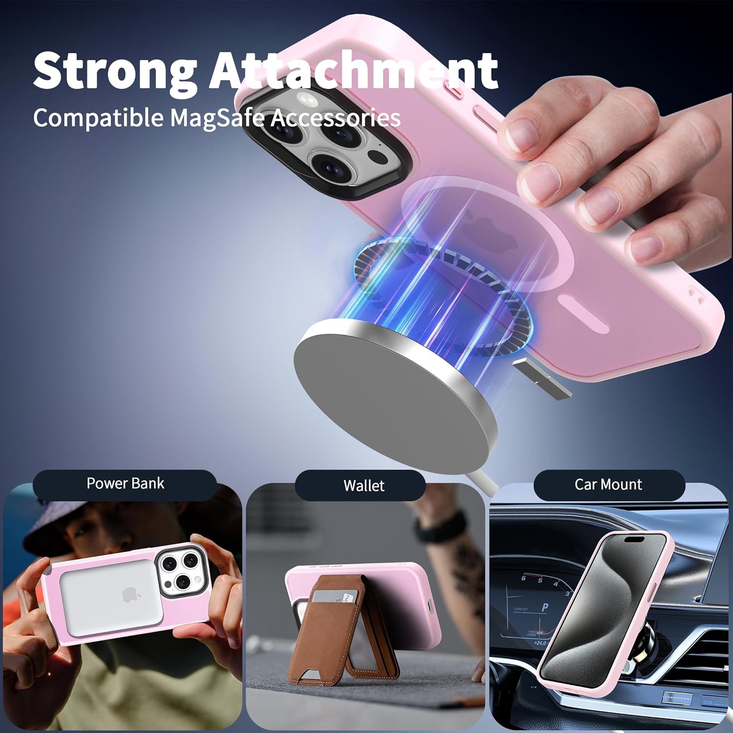 CACOE Магнитен калъф за iPhone 15 Pro 6.1 инча, съвместим с MagSafe, прозрачен матов калъф за мобилен телефон, удароустойчив, устойчив на надраскване, защитен калъф