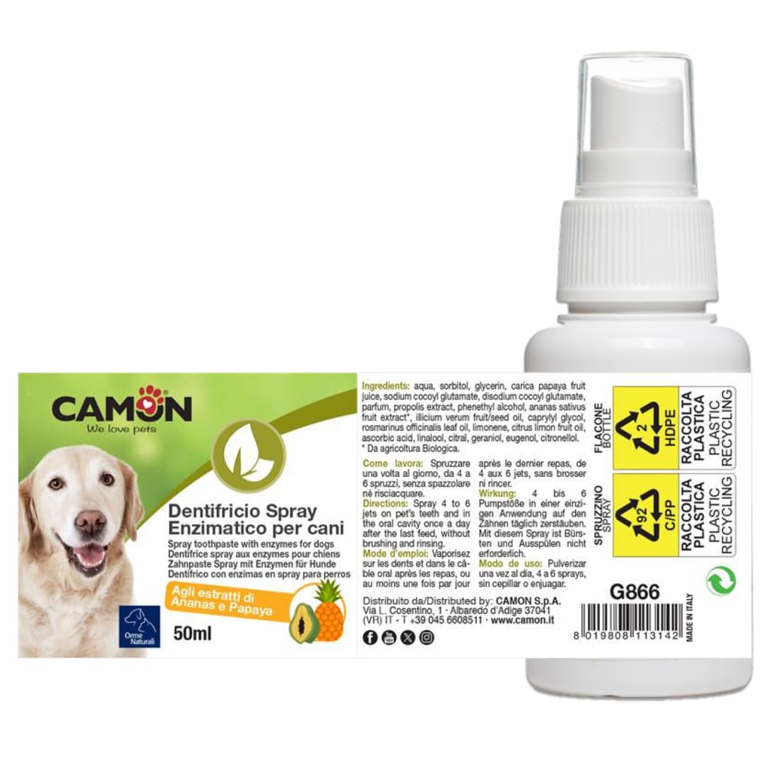 Основният принцип зад този ензимен спрей за паста за зъби е бромелаинът, който се съдържа в ананаса и прополиса. Бромелаинът има изразени протеолитични свойства, което означава, че атакува протеините и по този начин бактериалната плака. Локалното приложение на ананаса осигурява нежен почистващ ефект. Прополисът е уникален поради високото си съдържание на флавоноиди, които упражняват мощно почистващо действие. Освен това, синергията на етеричните масла насърчава свежия дъх. Течната формула позволява на компонентите да достигнат дори до най-труднодостъпните междузъбни пространства, осигурявайки перфектна орална хигиена. За: Кучета и котки. Формат: Бутилка от рециклирана пластмаса. Съдържание: 50 мл. Активни съставки: Екстракти от ананас и папая, прополис, звездовиден анасон, розмарин и лимон.