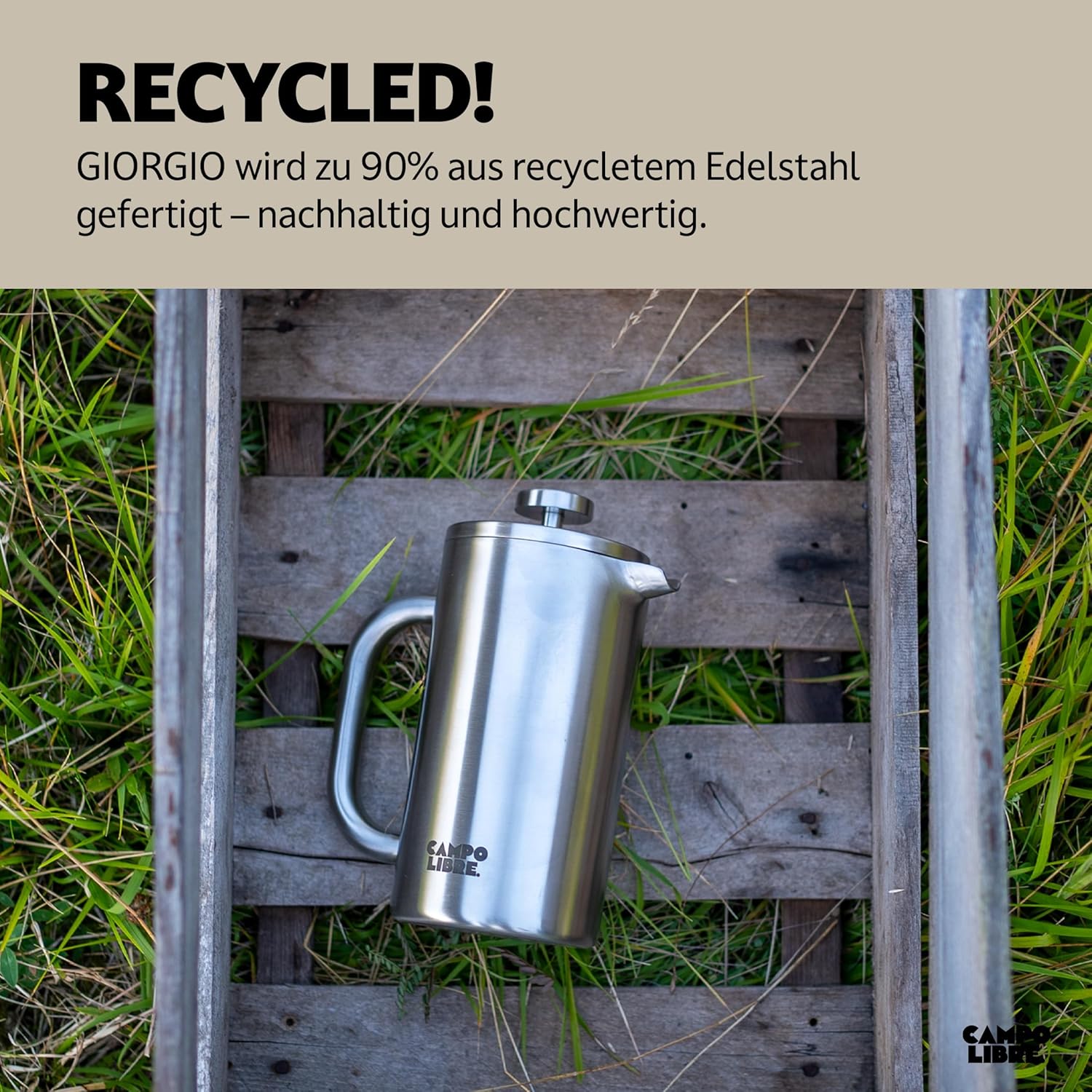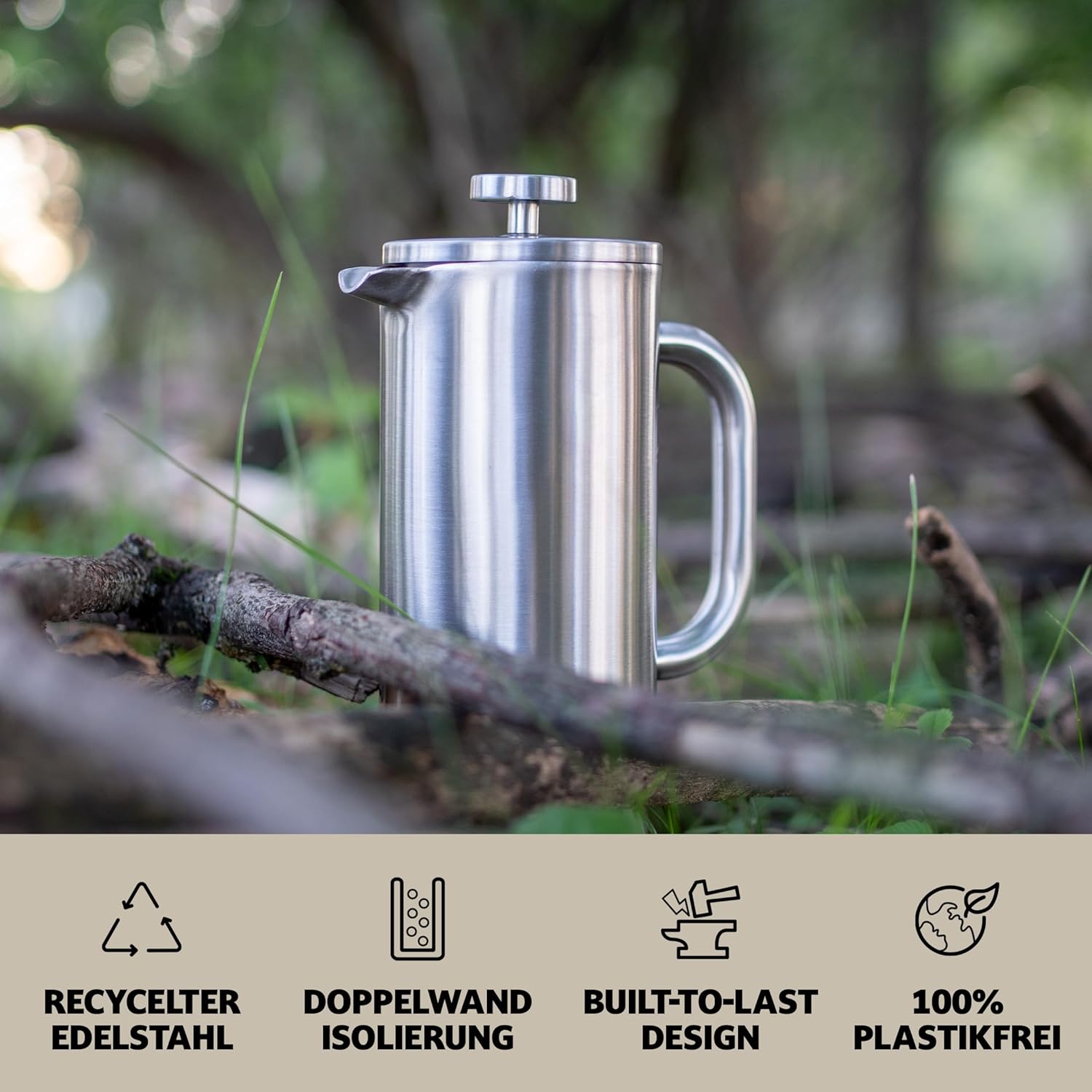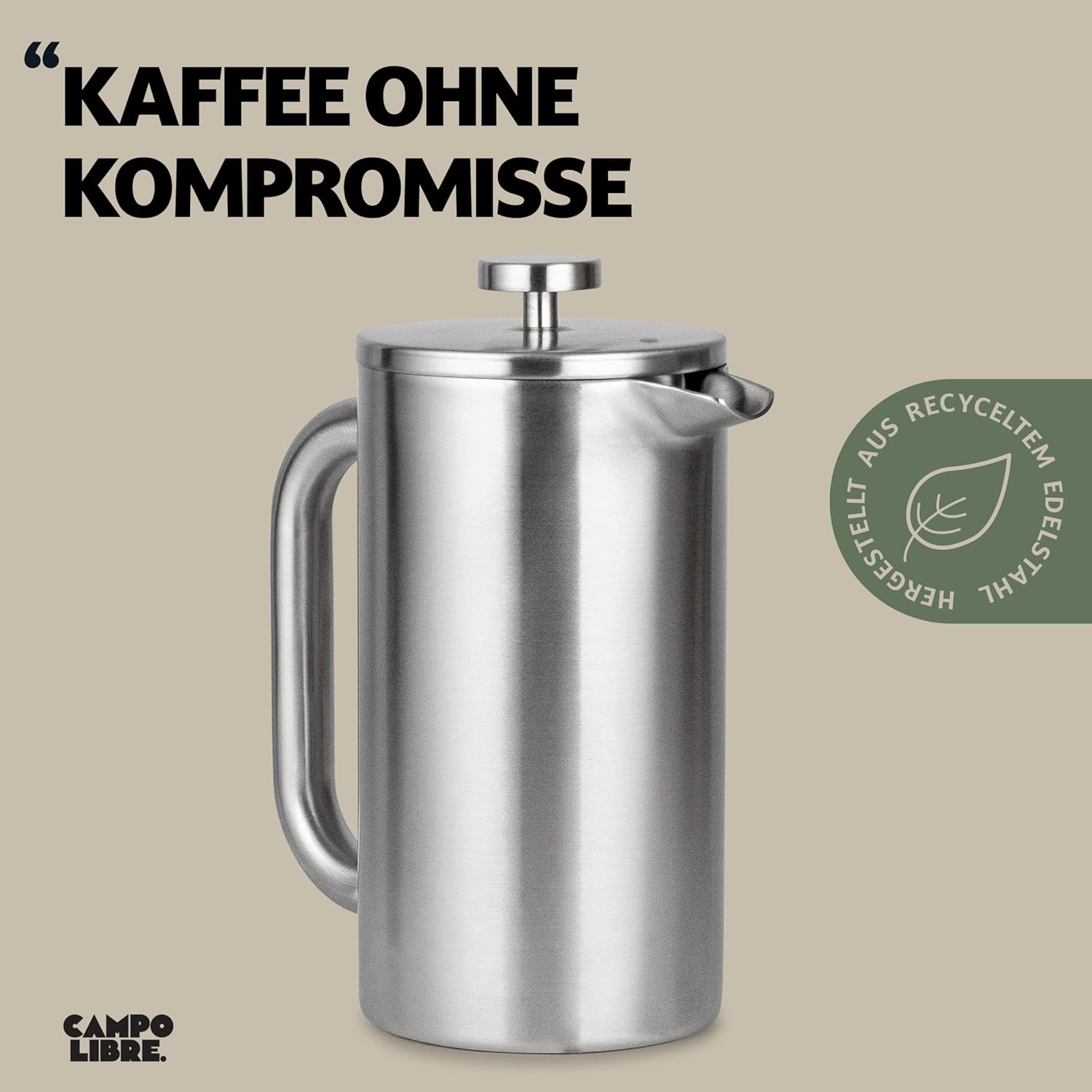 Campo Libre.® Giorgio. Френч преса I Кафемашина от неръждаема стомана с двойни стени 0.6 л, без пластмаса, с термична функция, включително резервен филтър I Кафемашина I 100%