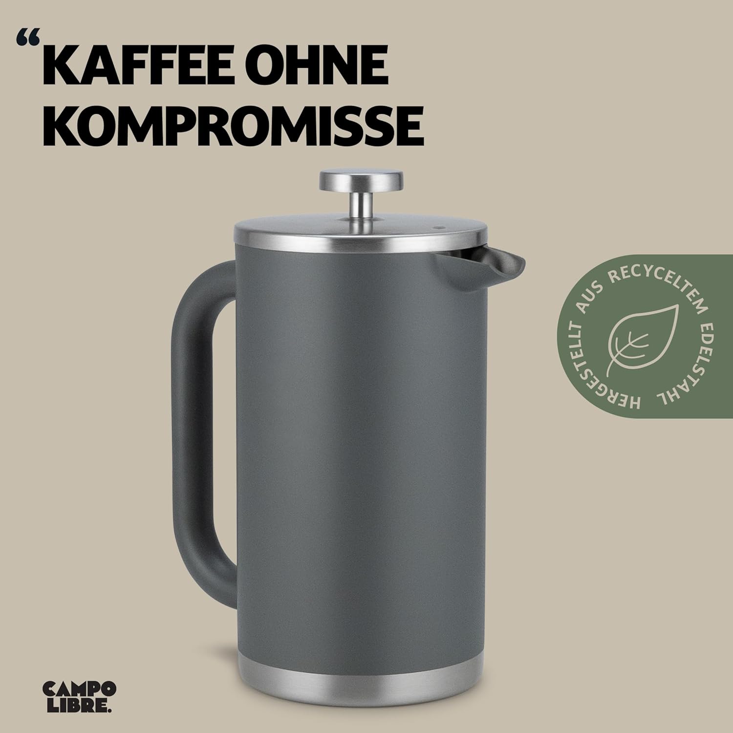 Campo Libre.® Giorgio. Френч преса I Кафемашина от неръждаема стомана с двойни стени 0.6 л, без пластмаса, с термична функция, включително резервен филтър I Кафемашина I 100%