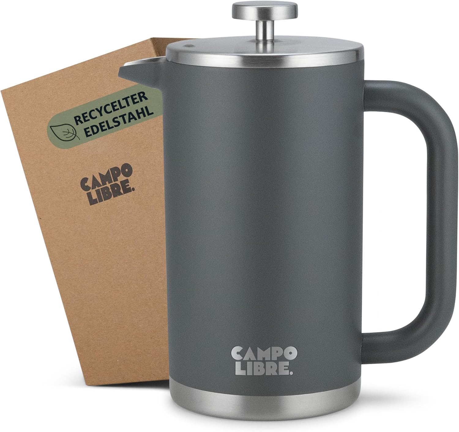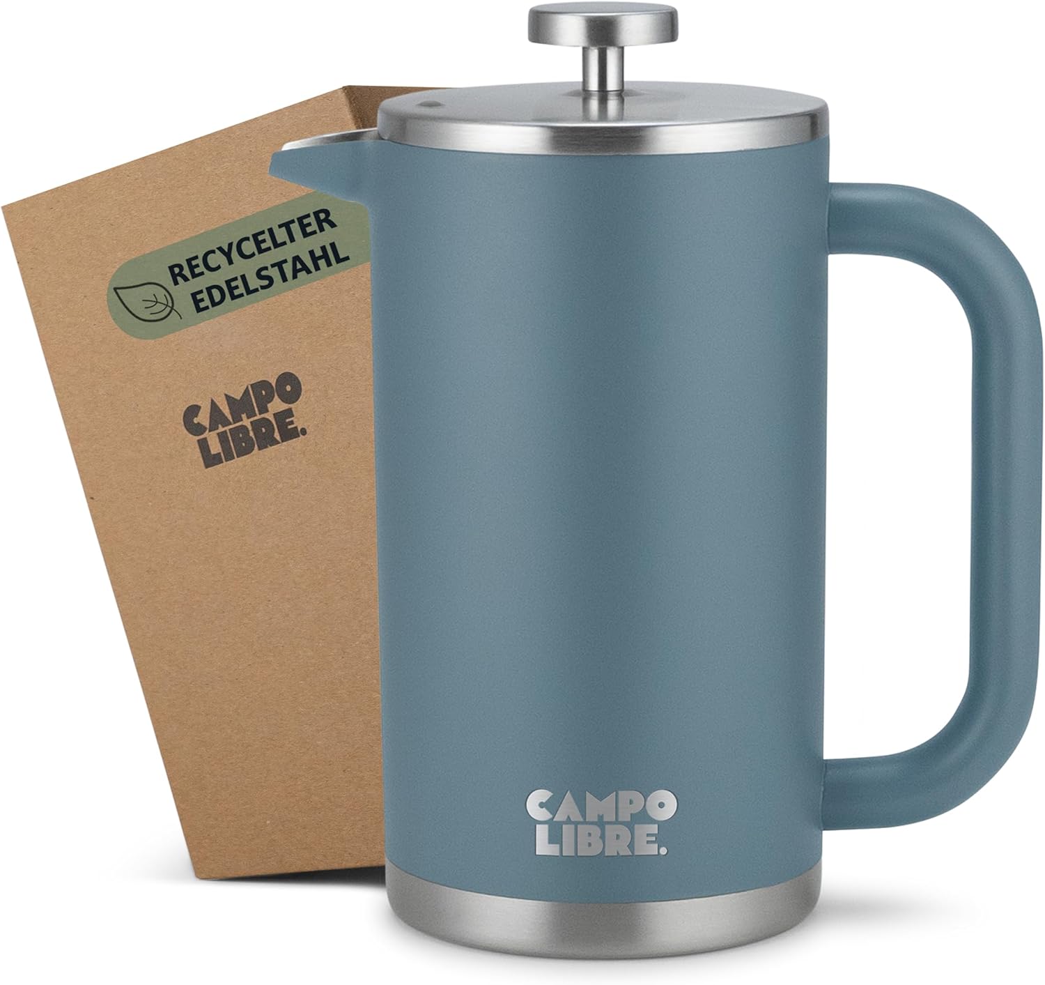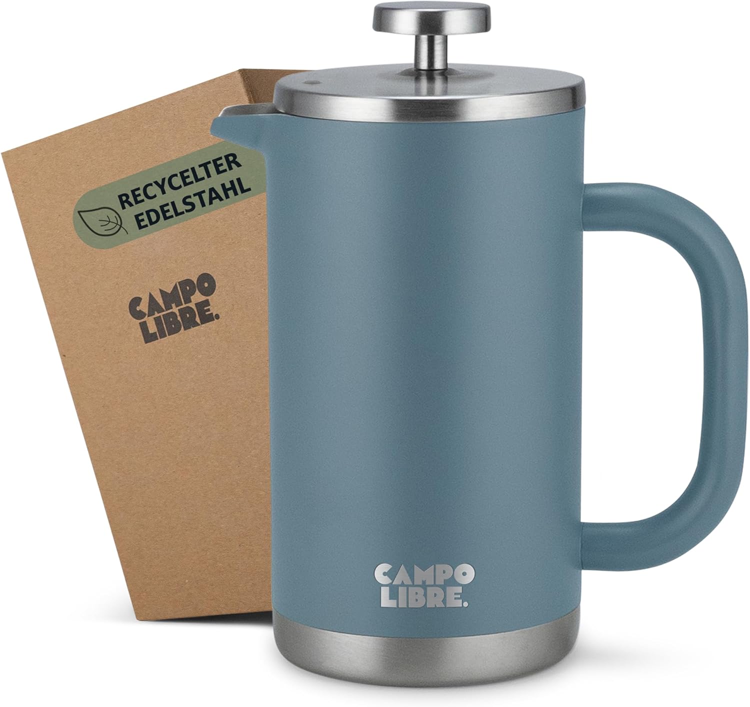 Campo Libre.® Giorgio. Френч преса, кафемашина, изработена от двустенна неръждаема стомана, 1 литър, преса за кафе без пластмаса с термична функция, включва сменяем филтър, кафемашина, изработена от