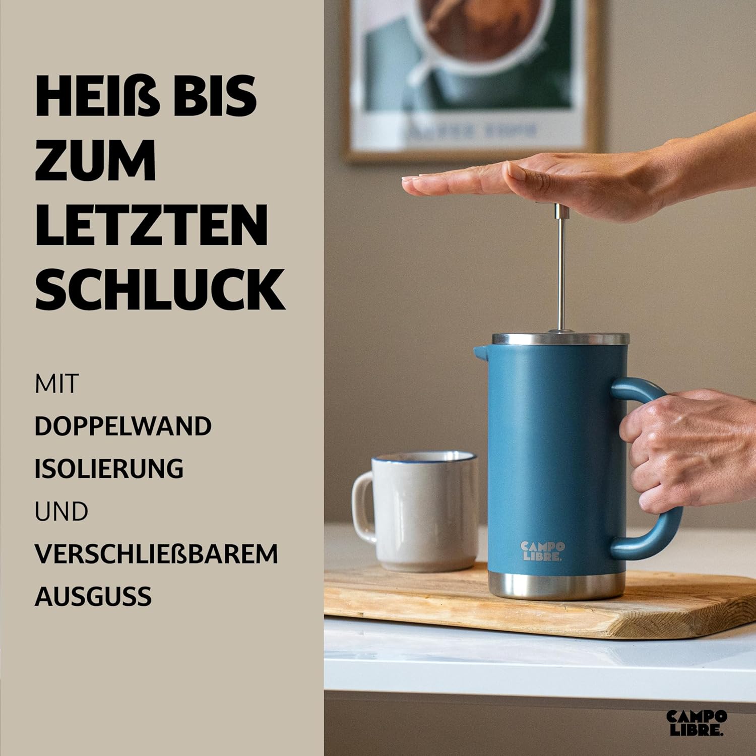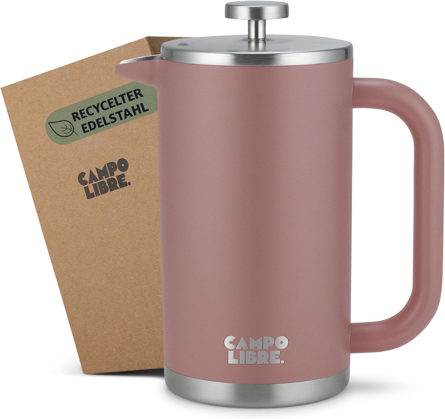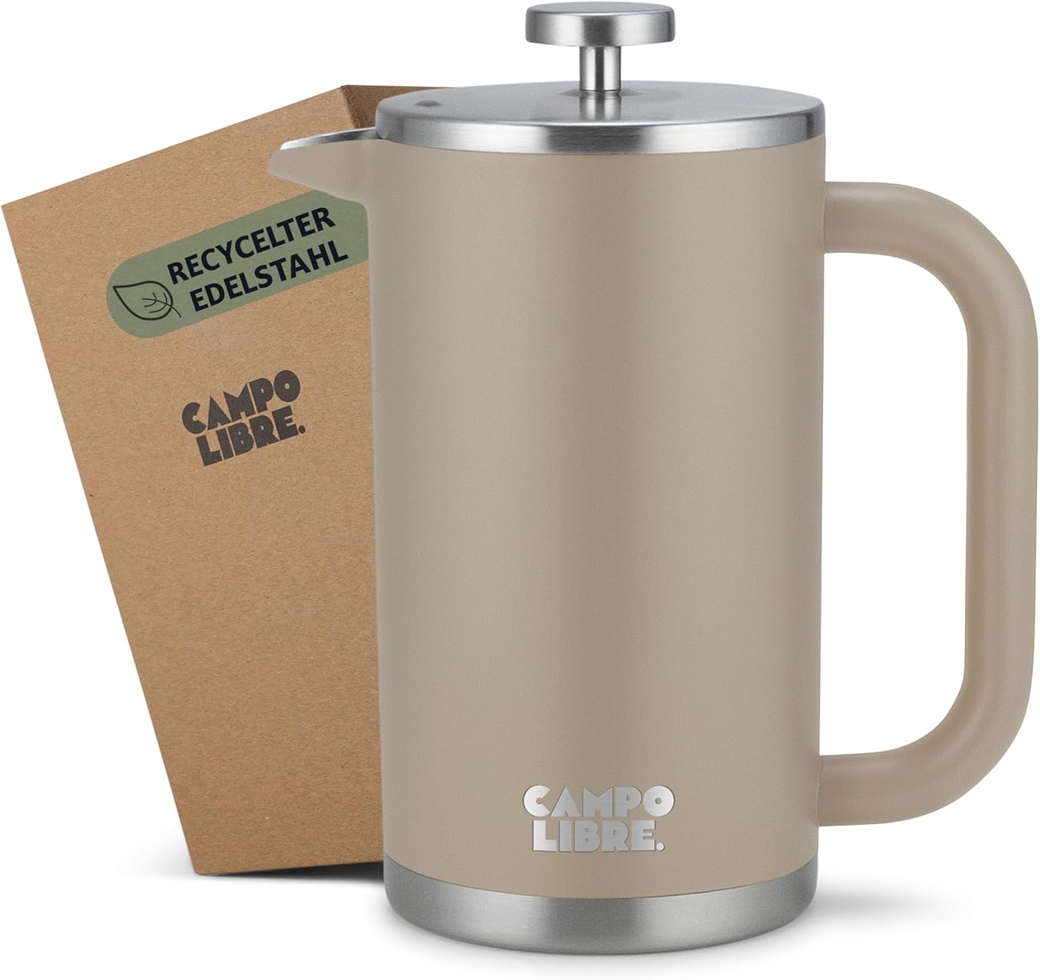 Campo Libre.® Giorgio. Френч преса, кафемашина, изработена от двустенна неръждаема стомана, 1 литър, преса за кафе без пластмаса с термична функция, включва сменяем филтър, кафемашина, изработена от