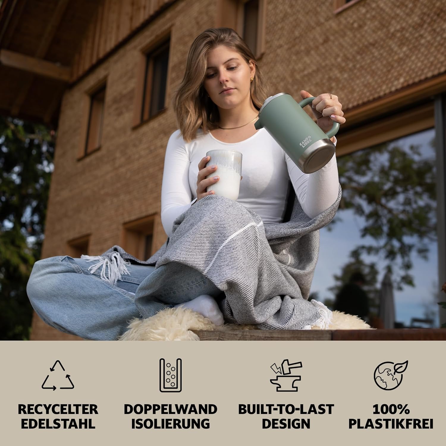 Campo Libre.® Giorgio. Френч преса, кафемашина, изработена от двустенна неръждаема стомана, 1 литър, преса за кафе без пластмаса с термична функция, включва сменяем филтър, кафемашина, изработена от