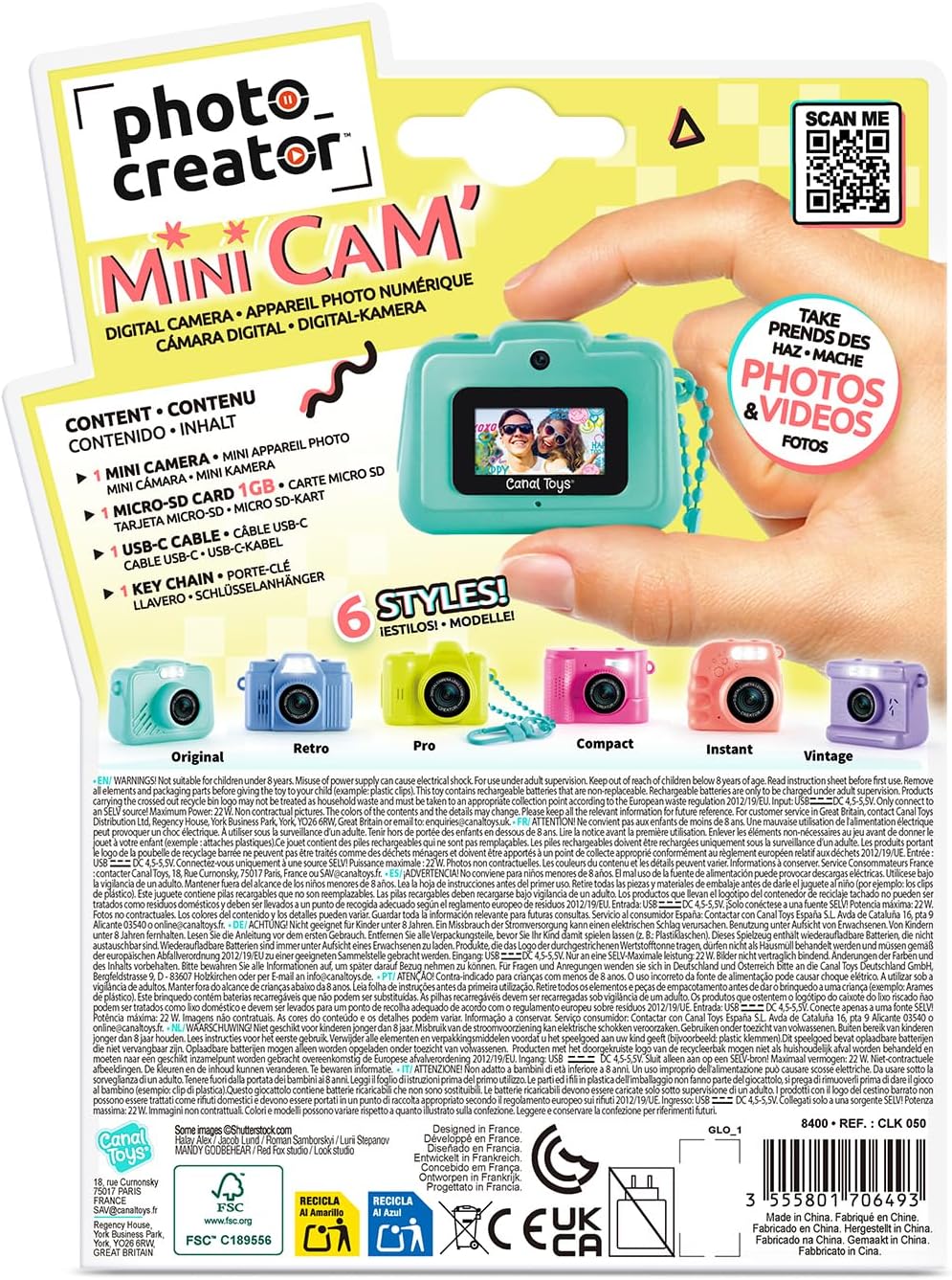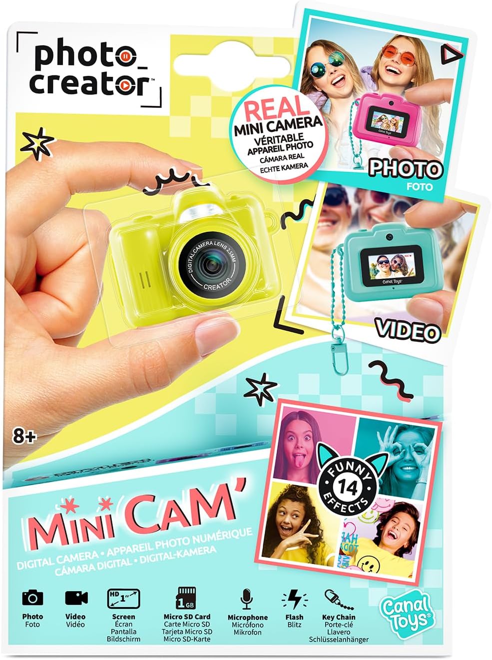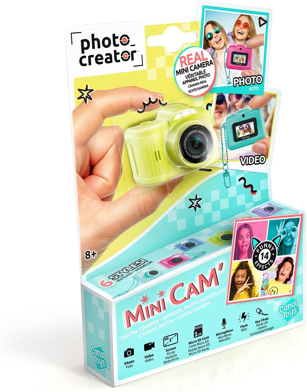 Мини камерата Digicam от Canal Toys съчетава модерни аксесоари със стилен ретро дизайн. Тя е ултракомпактна – идеална за в движение – и предлага 12MP снимки и 1080p Full HD видео запис. Независимо дали става въпрос за спонтанни моментни снимки, докато се разхождате из града, или за креативни кратки клипове при следващото ви пътуване – тази камера го прави възможно. 1,5-инчовият LCD дисплей и вграденият селфи режим гарантират, че вашите фронтални снимки са винаги на място. В комбинация с цветните филтри можете лесно да създавате индивидуални настроения – идеални за креативни визии в социалните медии. Работата е много проста: включете, изключете, натиснете. Перфектна за нови потребители, деца или всеки, който търси лека камера за ежедневието и пътуването. Вграденият слот за MicroSD карта позволява гъвкаво разширяване на паметта, а USB Type-C портът ви позволява бързо да споделяте снимки и видеоклипове. Като цяло, тази мини камера е стилен и практичен спътник – идеална за подарък или за вашите собствени творчески спомени. Къса, компактна и винаги под ръка: вашето ежедневие в снимки!