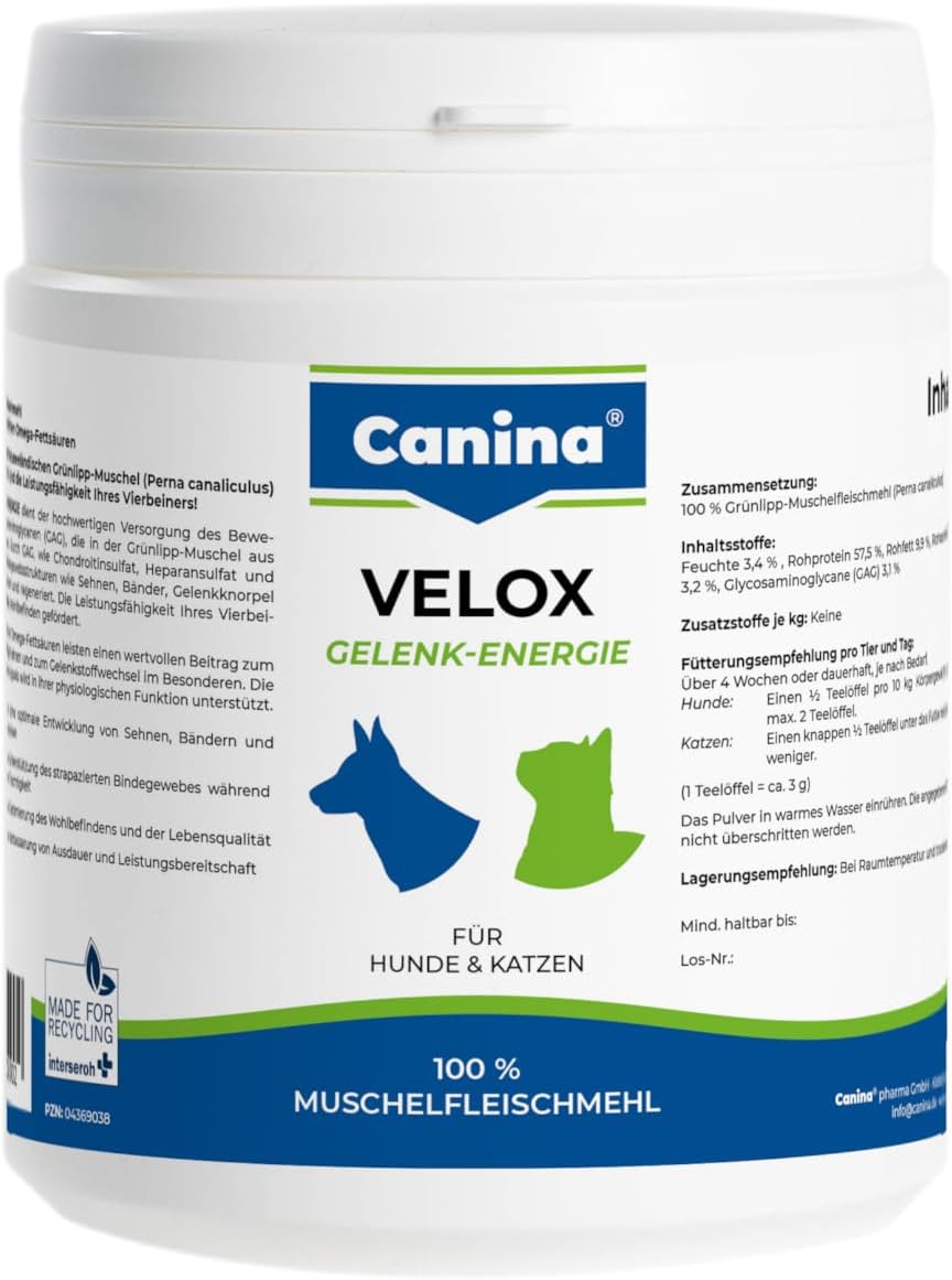 Състав: 100% брашно от зеленоуста мида (Perna canaliculus); Съставки: Суров протеин 57,5%, сурови мазнини 9,9%; Хранителни добавки: няма