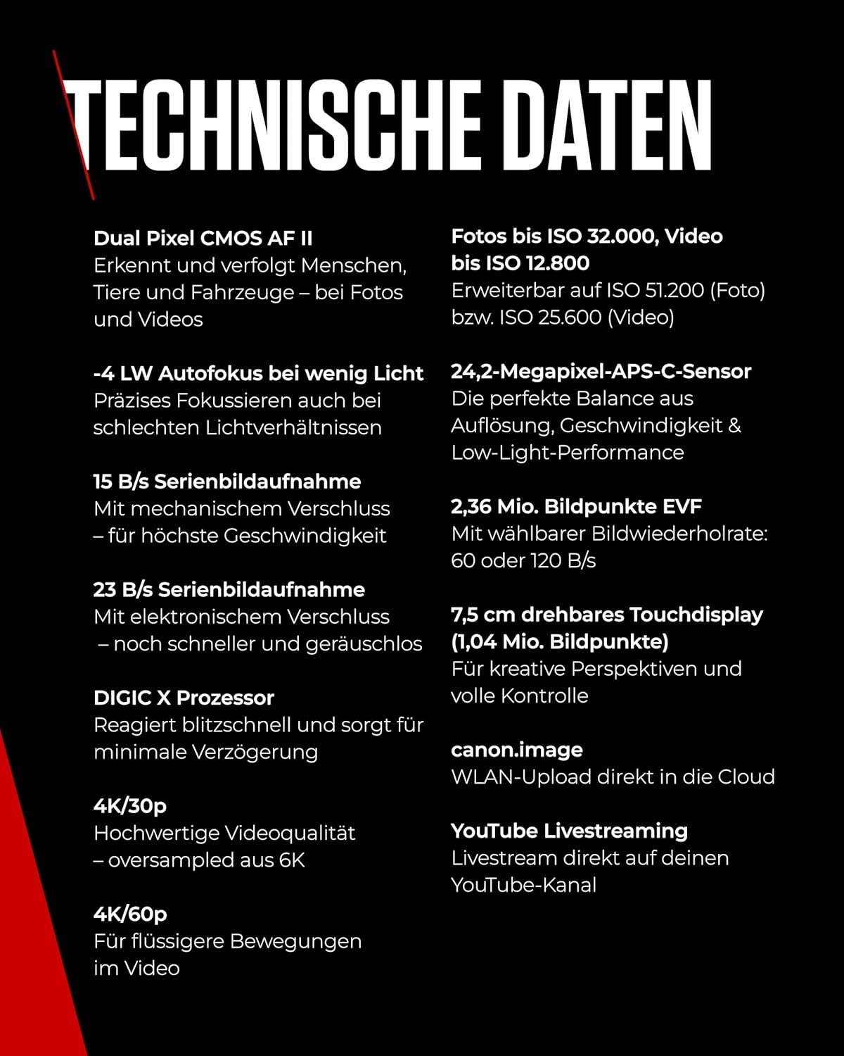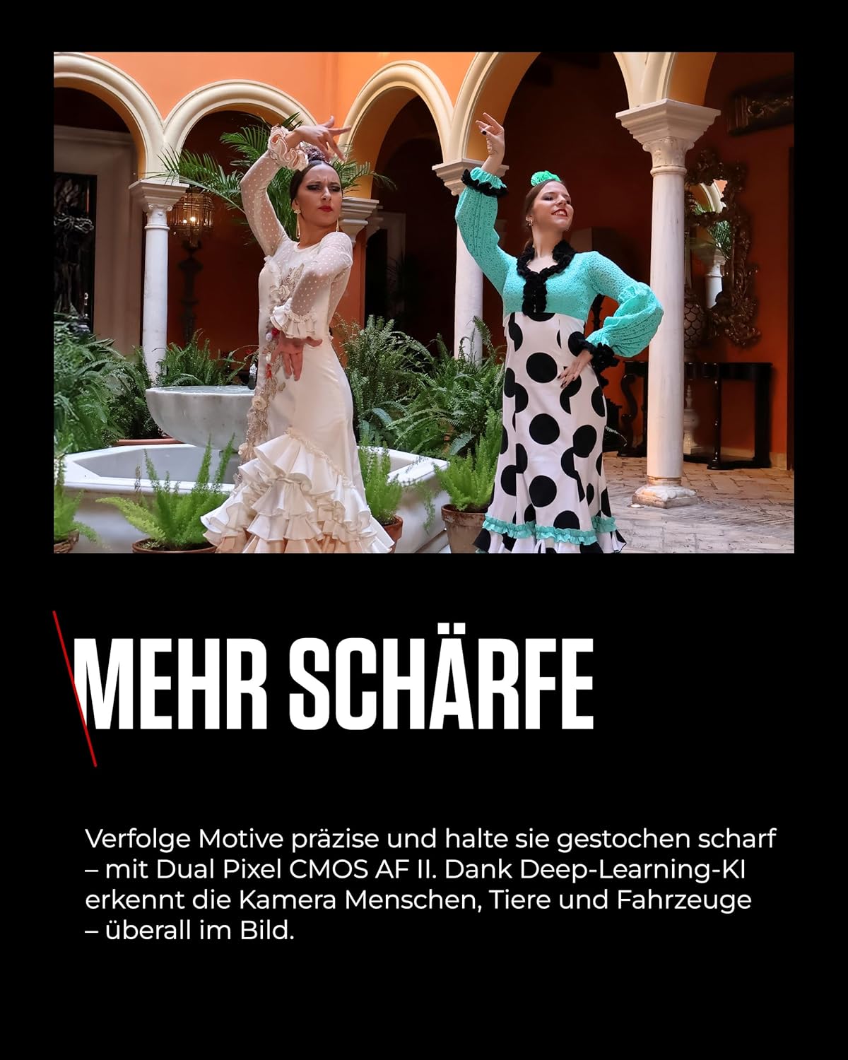• Дълбоко обучение – алгоритъмът за дълбоко обучение разпознава хора, животни и превозни средства, фокусира бързо и прецизно, дори когато са в движение. Идеален за бързо и точно проследяване на фокуса.