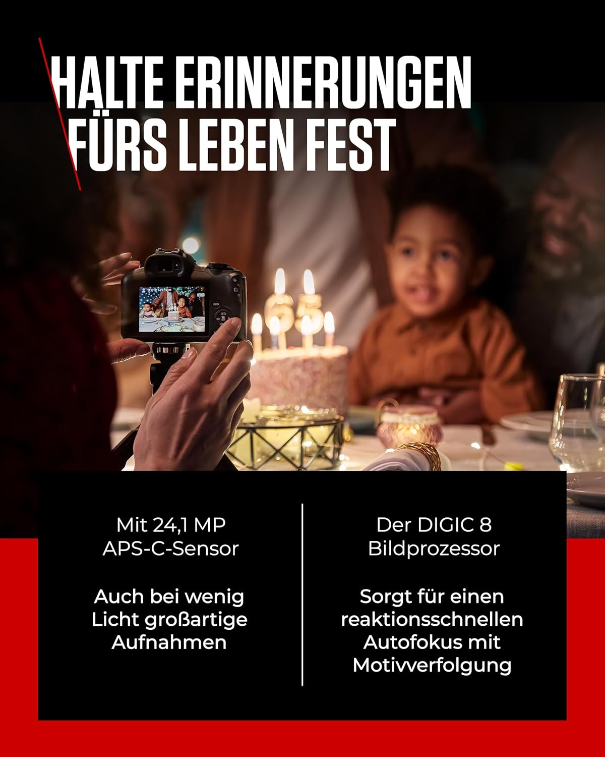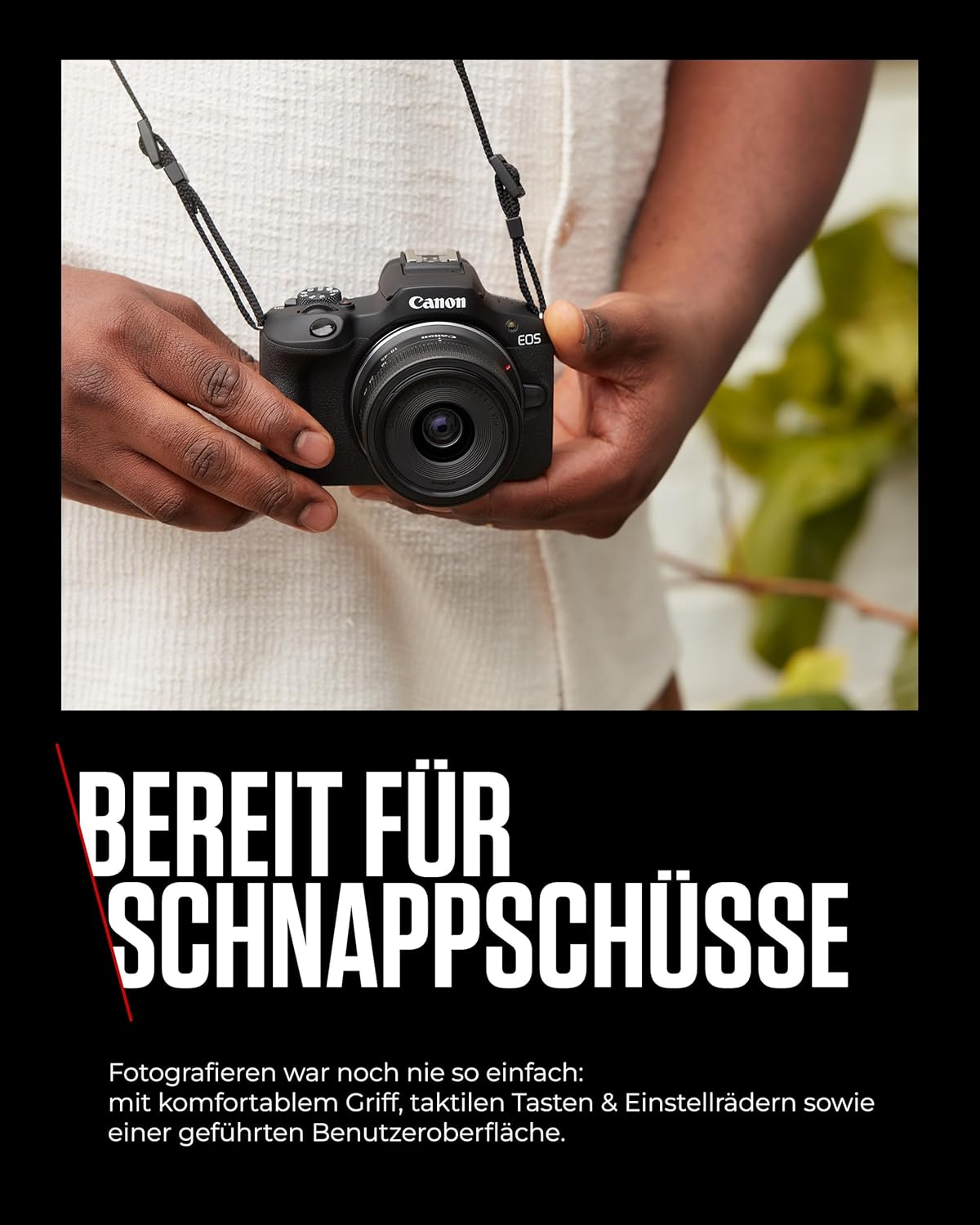 Предоставяйки всички функции, от които се нуждаете, в компактен дизайн, EOS R100 улавя вашите специални моменти с изключително качество, за да отдаде справедливост на вашите спомени. Уловете без усилие важния момент с изключителни детайли: големият 24,1 MP APS-C сензор за изображения осигурява по-добра производителност при събиране на светлина и повишен контрол върху дълбочината на рязкост. Получете истинска дълбочина на рязкост със сензор, който е 4 пъти по-голям от този на водещ смартфон. Не са необходими трикове, за да постигнете размазан фон и креативни ефекти на камерата. Компактен и лек, достатъчно малък, за да се побере във включената чанта: той е в режим на готовност, за да го вземете и да тръгнете с включената 64GB SD карта.