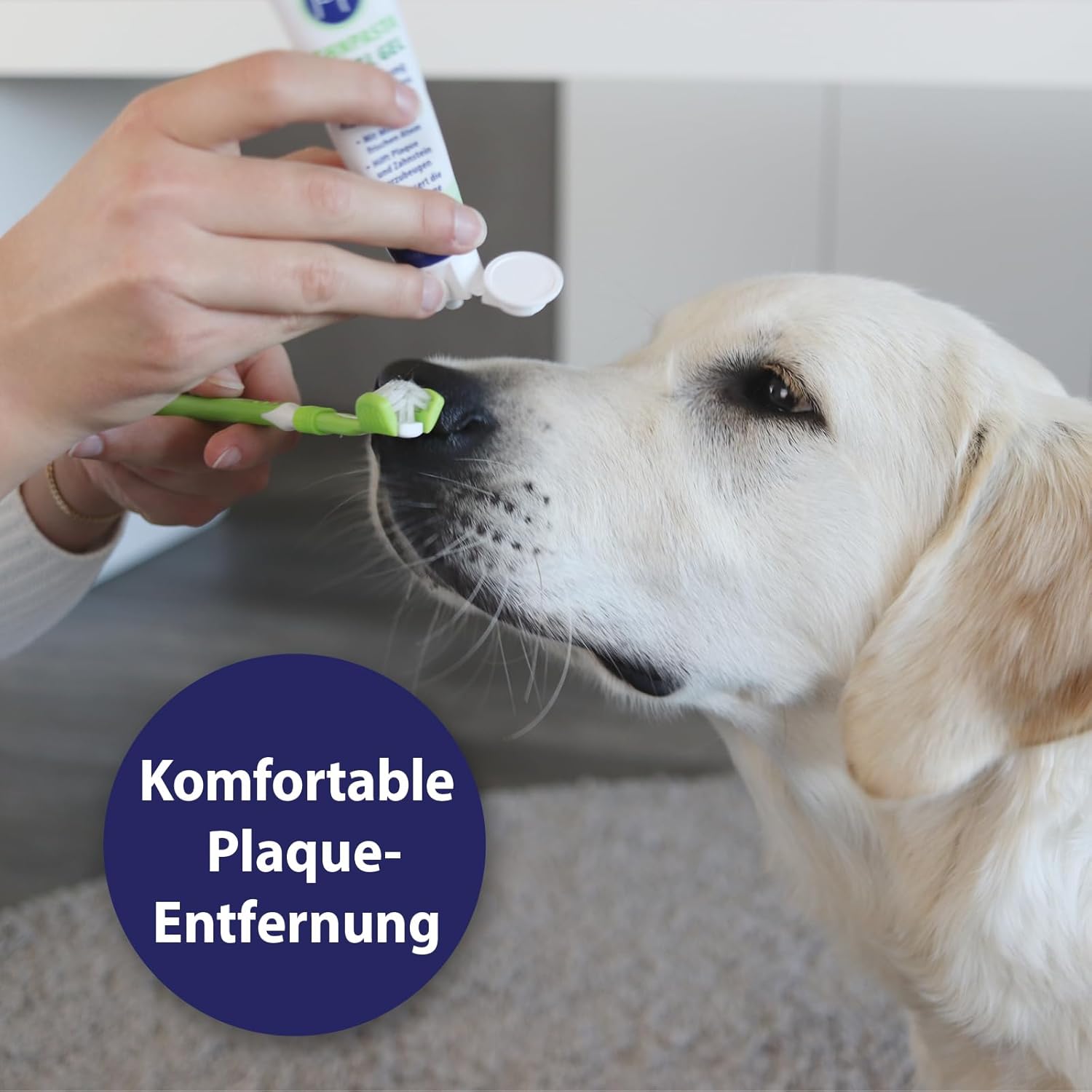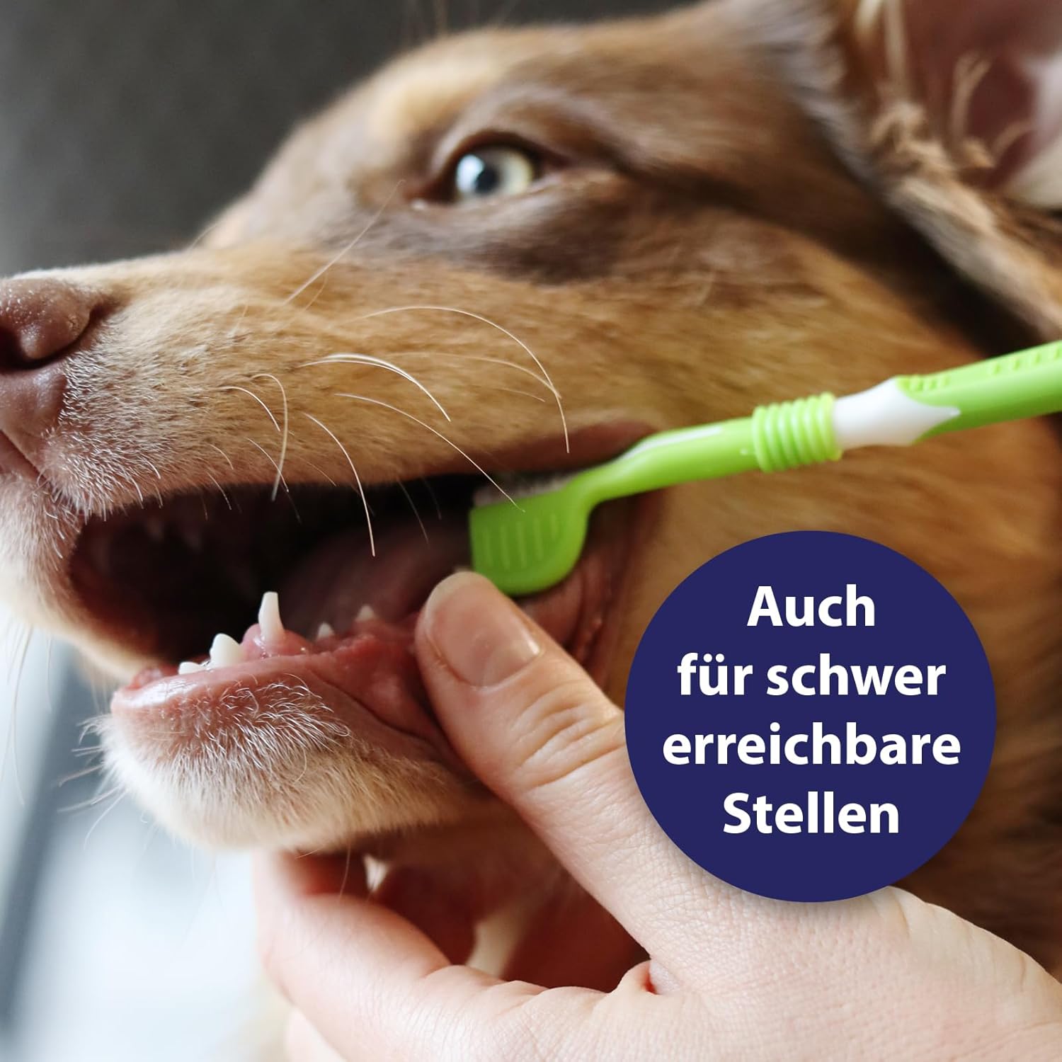 Tragen Sie bei der ersten Anwendung einen Tropfen Canosept Zahnpasta Dental Gel auf Ihren Finger auf und lassen Sie Ihren Hund schmecken. Tragen Sie dann eine kleine Menge der Zahnpasta auf die Canosept 3-köpfige Zahnbürste auf und bürsten Sie die Vorderzähne Ihres Hundes sanft hin und her. Dank der 3 Sets abgewinkelter Zahnbürstenborsten ist jeder Zahn fest umhüllt. Für beste Ergebnisse putzen Sie die Zähne Ihres Hundes mehrmals pro Woche. Spülen Sie die Zahnbürste nach jedem Gebrauch mit sauberem Wasser aus.