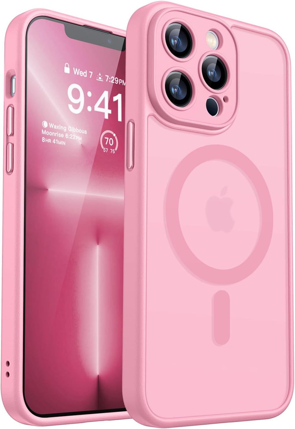 CANSHN 2024 Калъф за iPhone 13 Pro Max със защита на камерата за Magsafe (най-добра военна защита и магнитна сила) Изключително издръжлив, удароустойчив, розов