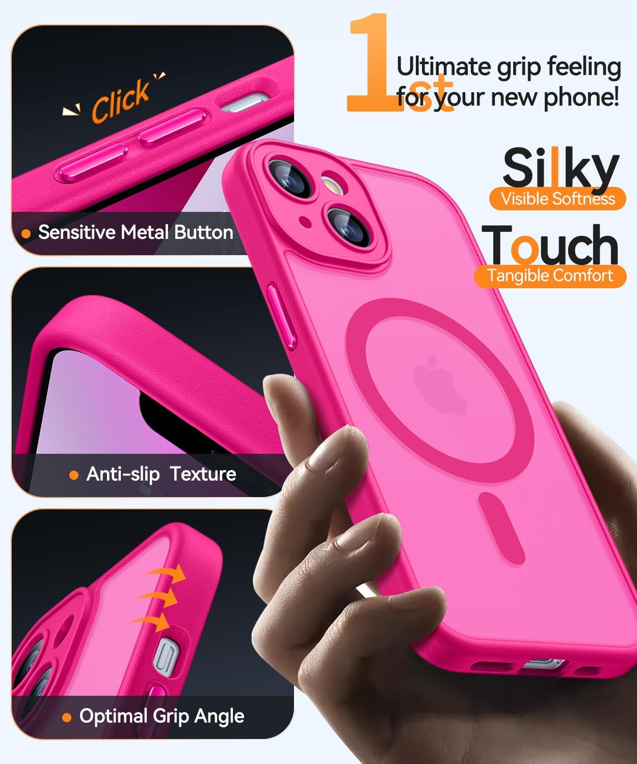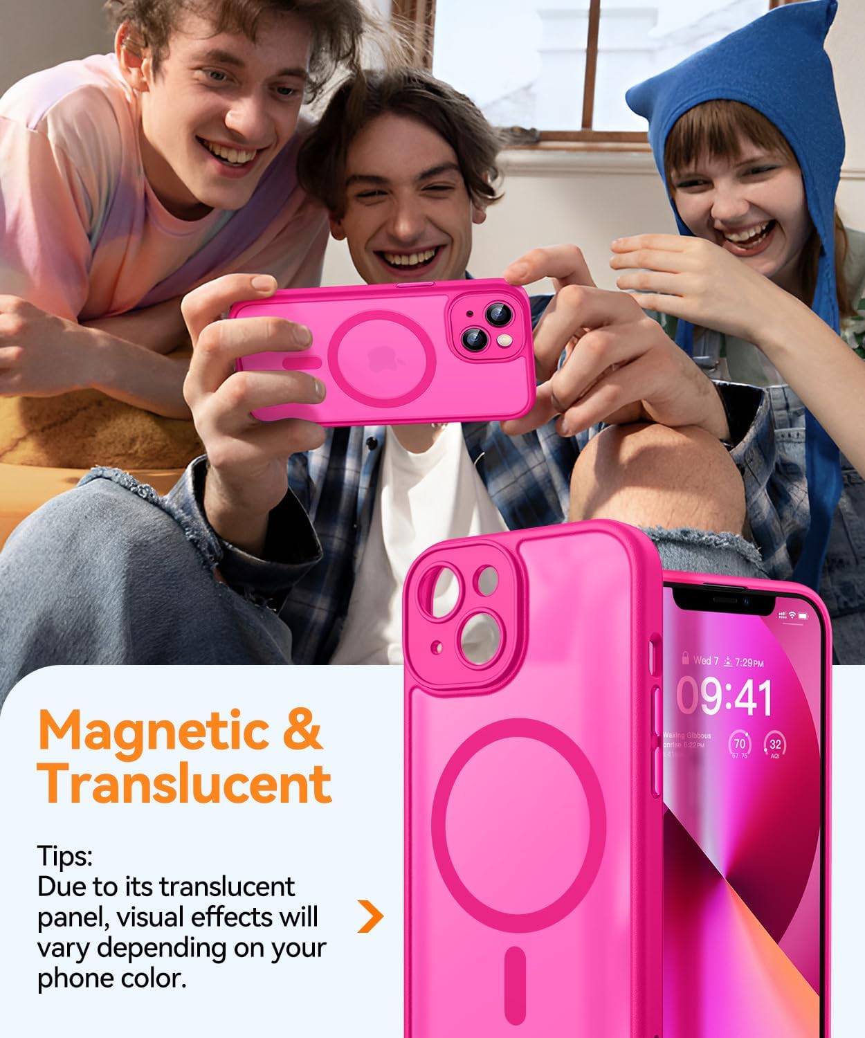 CANSHN 2024 Калъф за iPhone 13 със защита на камерата за Magsafe (най-добра военна защита и магнитна сила) Изключително издръжлив, удароустойчив, ярко розов