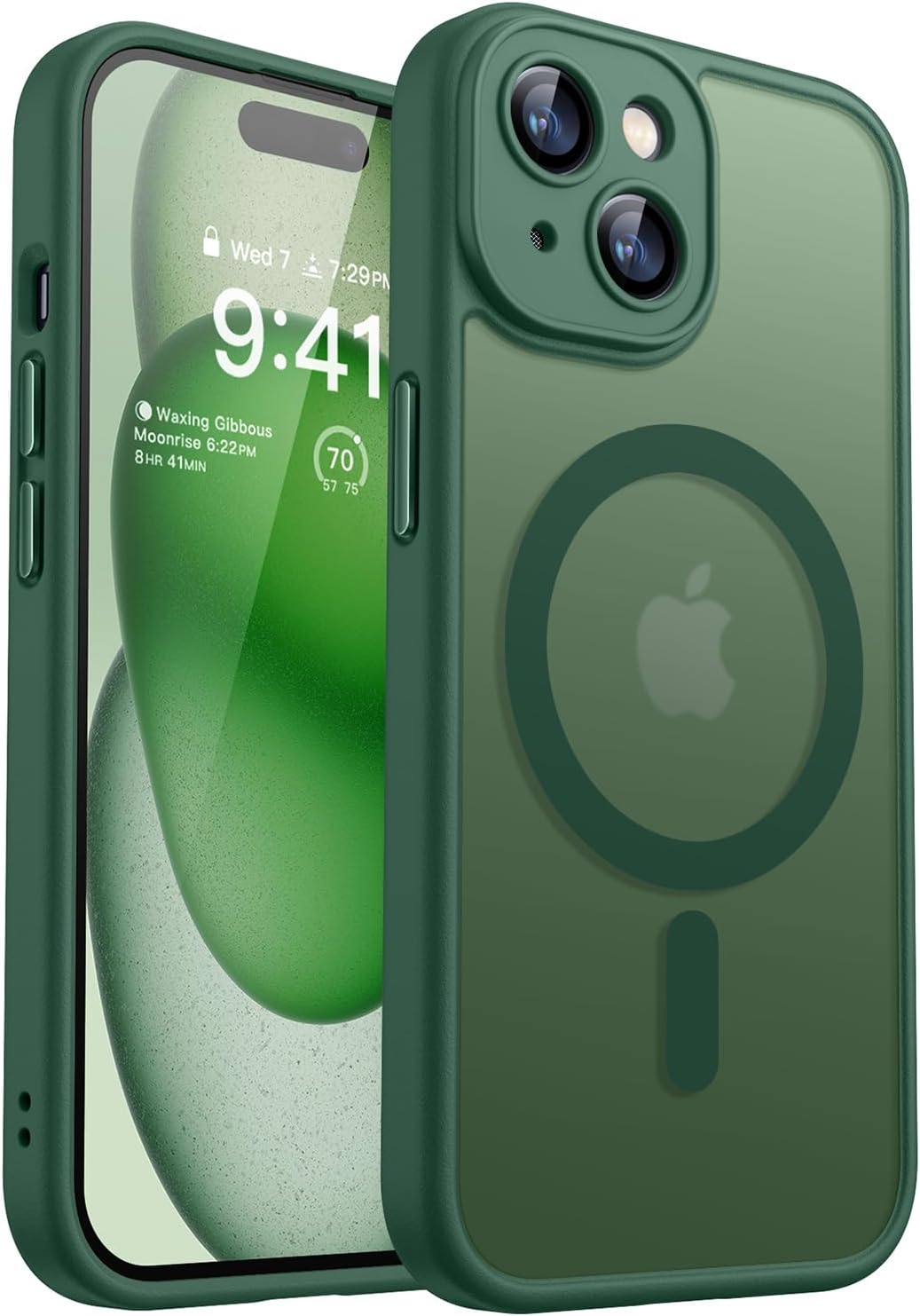 CANSHN 2024 Калъф за iPhone 15 Plus със защита на камерата за Magsafe (най-добра военна защита и магнитна сила) Изключително издръжлив, удароустойчив, тъмнозелен