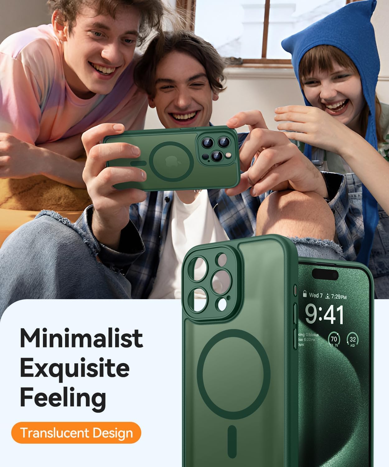 CANSHN 2024 Калъф за iPhone 15 Pro Max със защита на камерата за Magsafe (най-добра военна защита и магнитна сила) Изключително издръжлив, удароустойчив, тъмнозелен