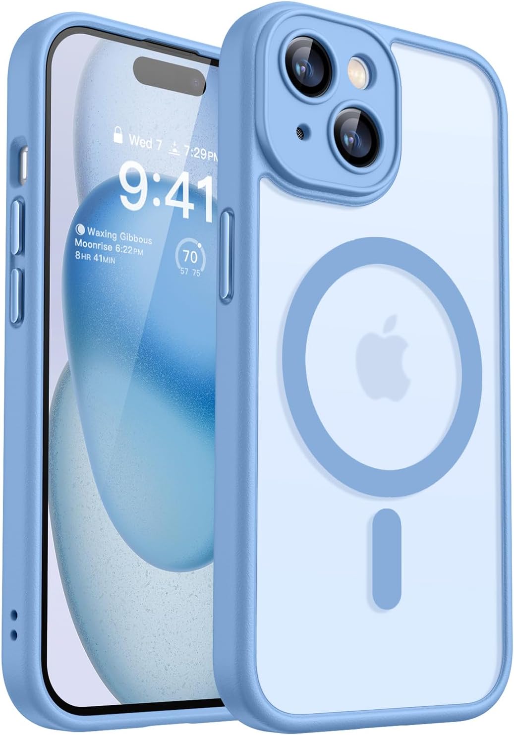 CANSHN 2024 Калъф за iPhone 15 със защита на камерата за Magsafe (най-добра военна защита и магнитна сила) Изключително издръжлив, удароустойчив, небесно син