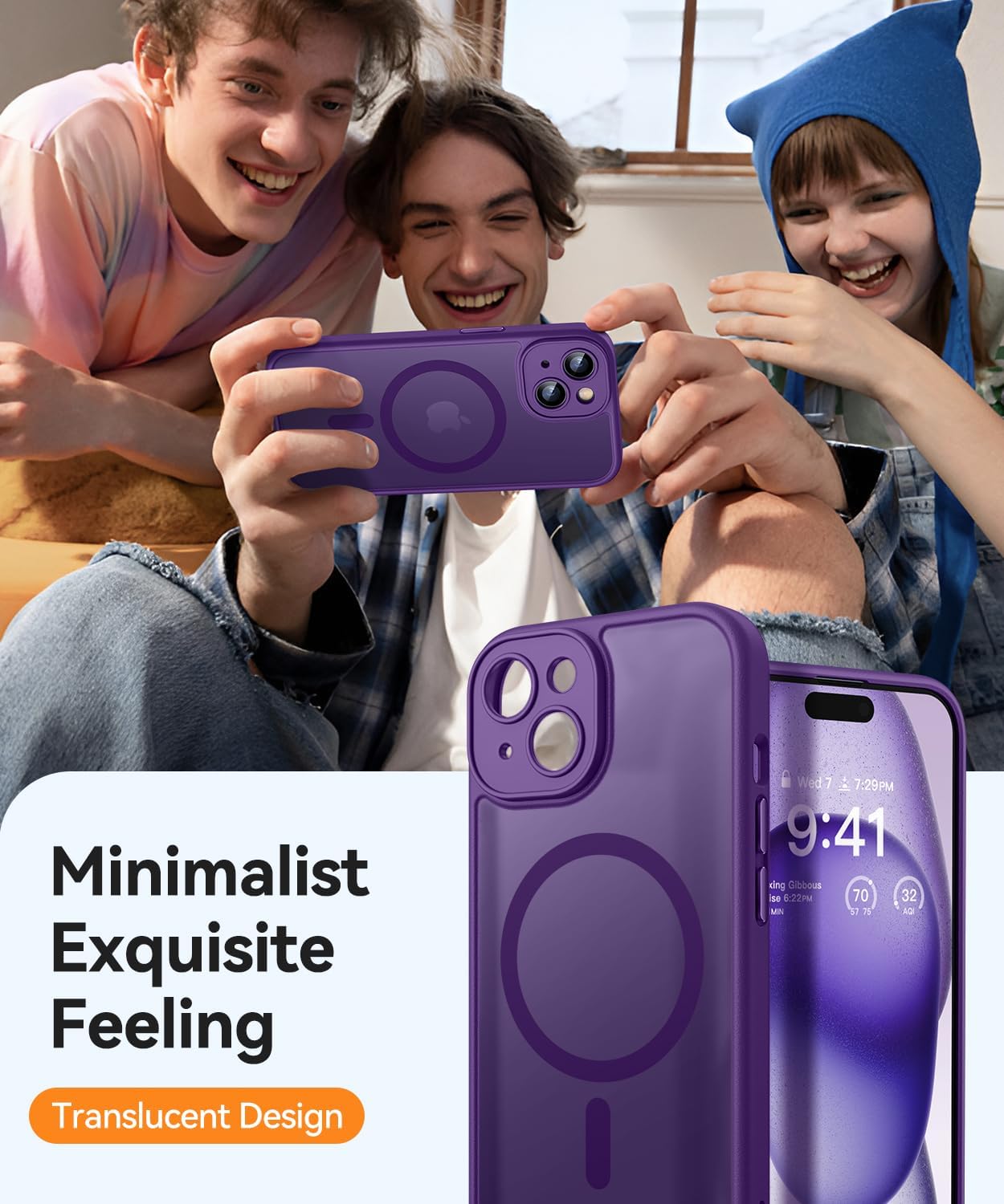 CANSHN 2024 Калъф за iPhone 15 със защита на камерата за Magsafe (най-добра военна защита и магнитна сила) Изключително издръжлив, удароустойчив, тъмно лилав