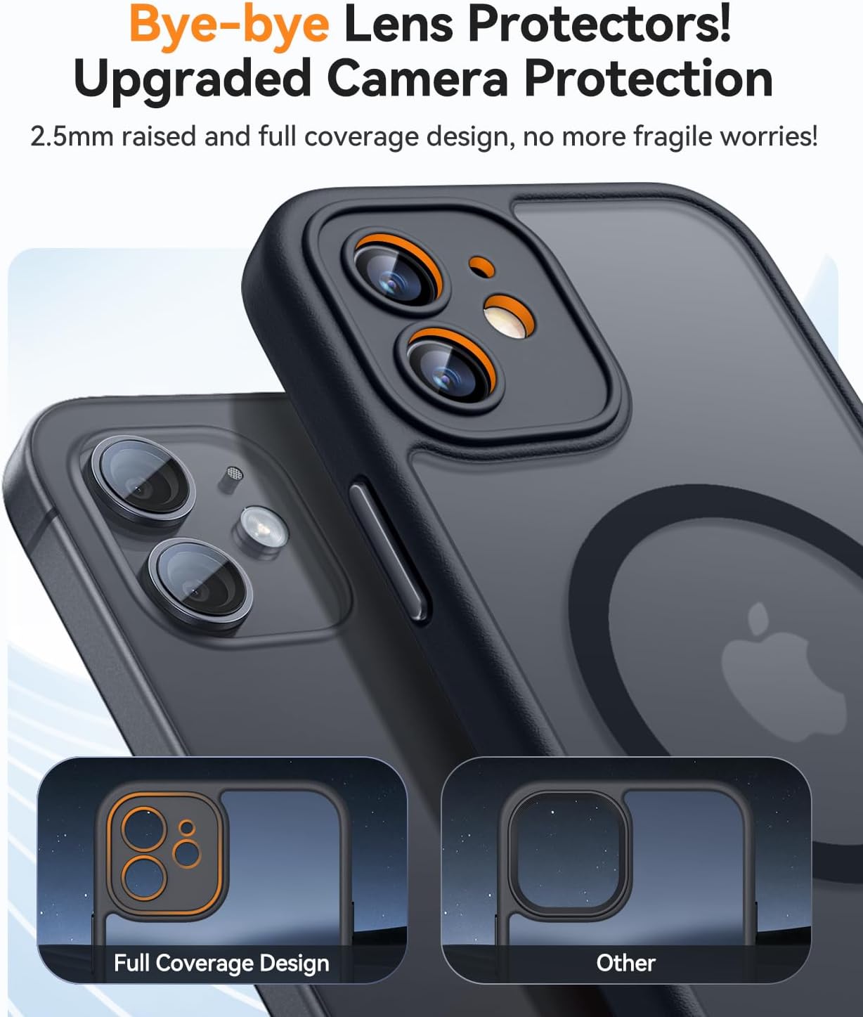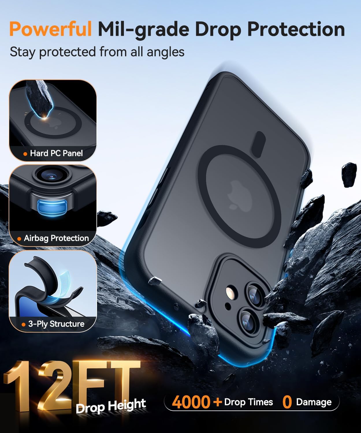 CANSHN калъф за iPhone 12 със защита на камерата за Magsafe (най-висока военна защита и магнитна сила), изключително издръжлив, удароустойчив калъф, черен