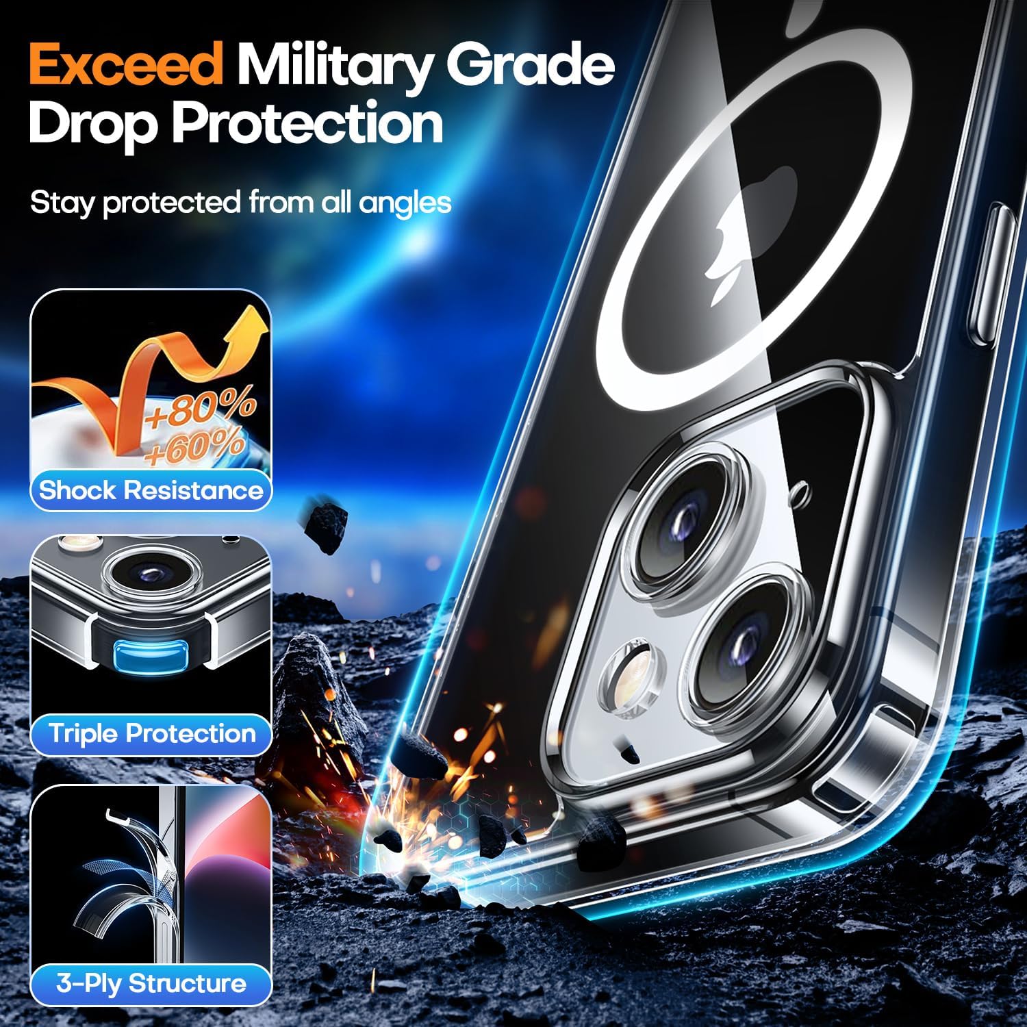 CANSHN Калъф за iPhone 14 със защита на камерата за Magsafe (най-добра военна защита и магнитна сила) Изключително издръжлив калъф за iPhone 14, удароустойчив, прозрачен