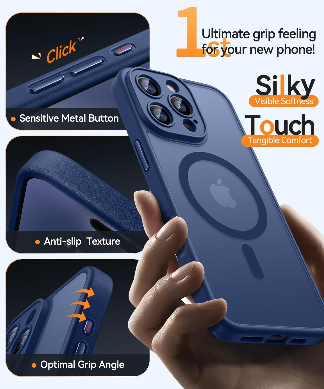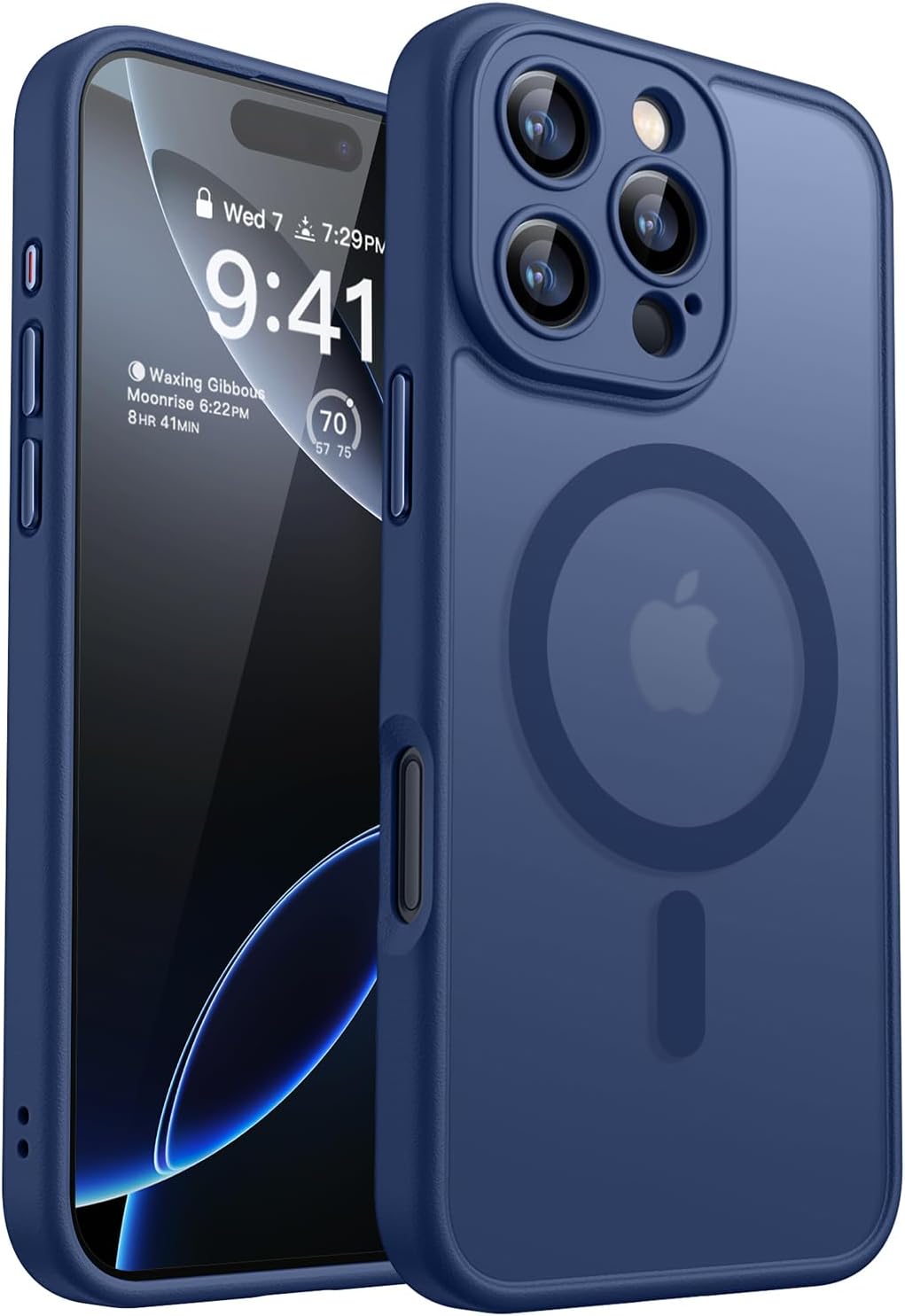 CANSHN калъф за iPhone 16 Pro със защита на камерата за Magsafe (най-висока военна защита и магнитна сила) изключително издръжлив, удароустойчив, тъмносин