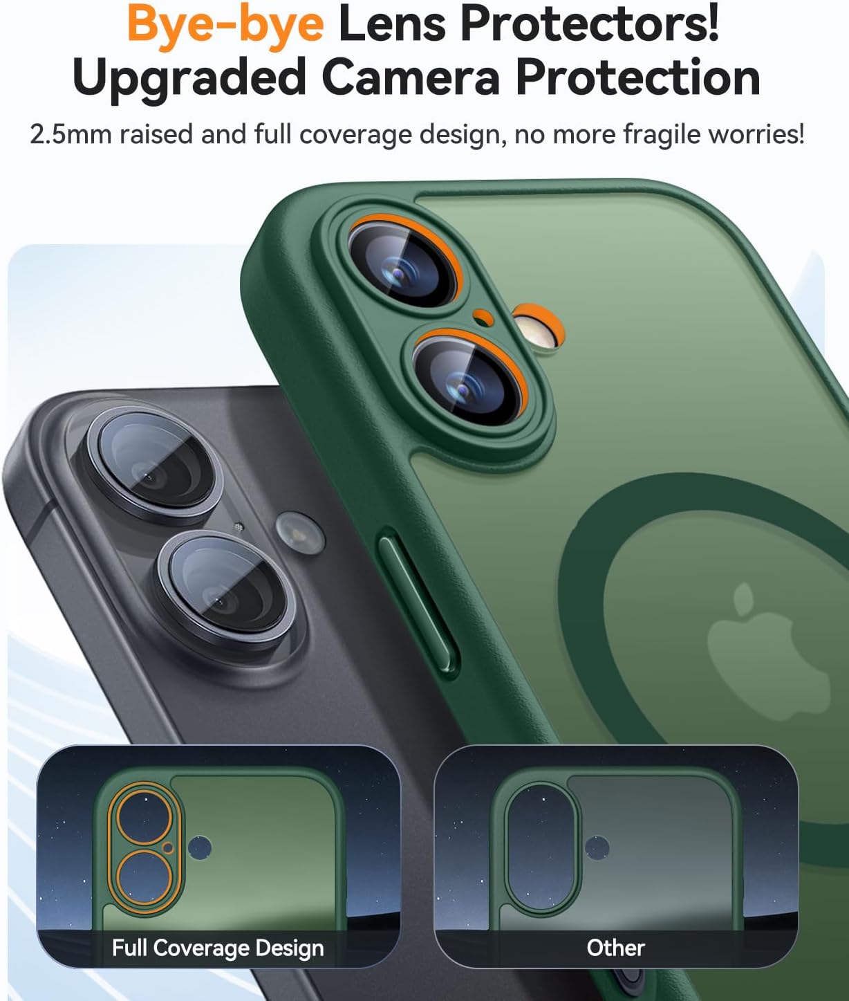 • Подобрена пълна защита на камерата: Кажете сбогом на конвенционалните протектори за обективи! В сравнение с други обикновени калъфи за телефони, нашият калъф за iPhone 15 предлага подобрена цялостна защита за камерата, с 2,5 мм висок ръб около обектива. Той осигурява цялостна защита за обектива, без да прави компромис с фотографията.