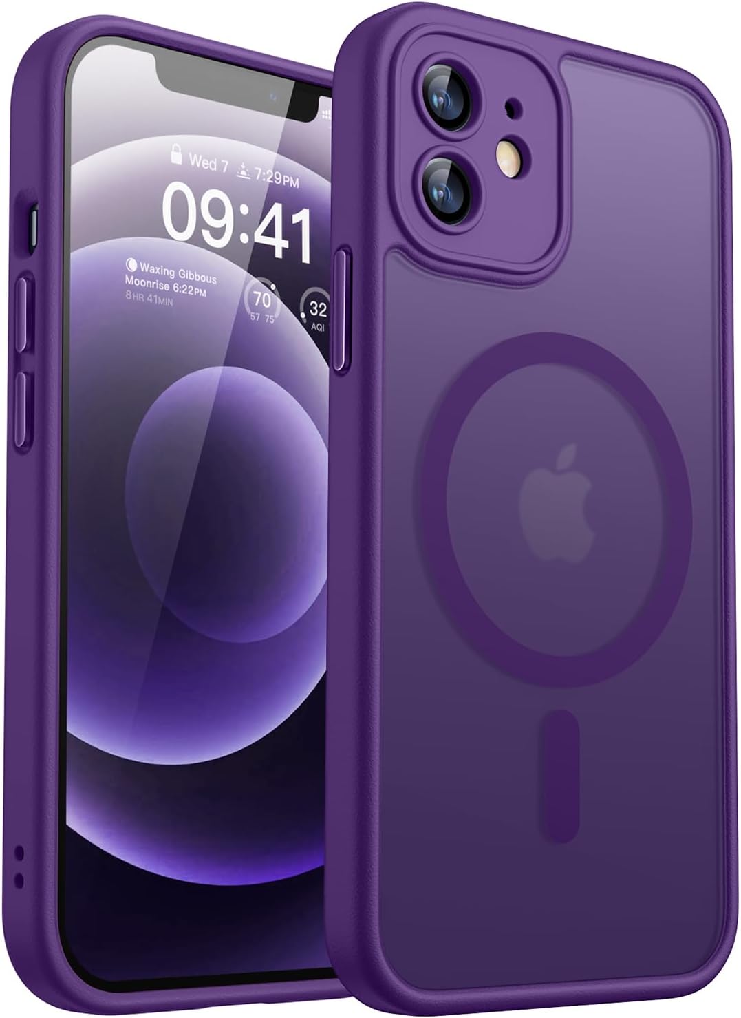 CANSHN Кейс за iPhone 12 Mini със защита на камерата за Magsafe (най-висока военна защита и магнитна сила) Изключително издръжлив кейс за iPhone 12 Mini, удароустойчив, тъмно лилав