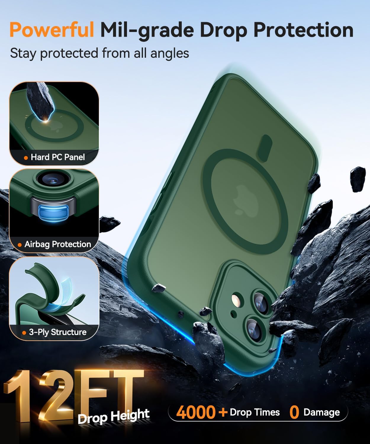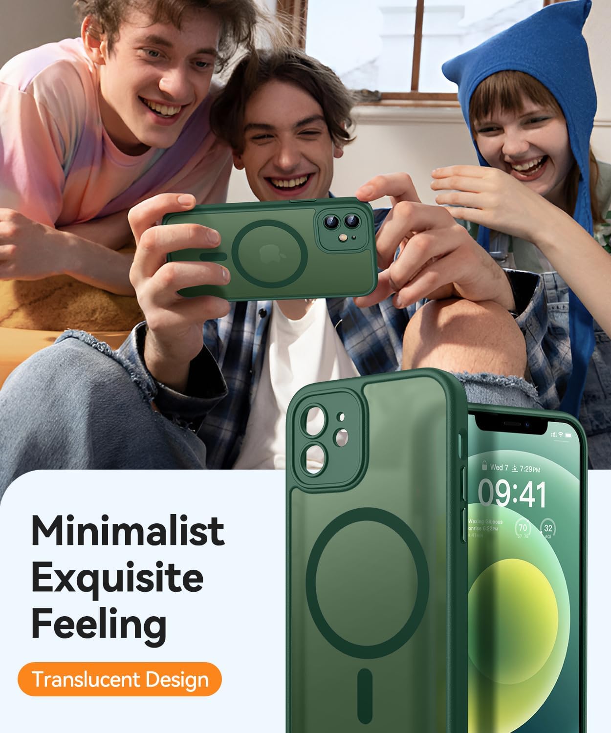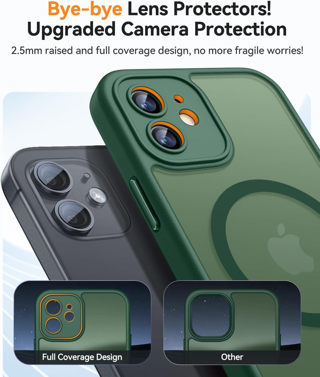 CANSHN Кейс за iPhone 12 Mini със защита на камерата за Magsafe (най-висока военна защита и магнитна сила) Изключително издръжлив кейс за iPhone 12 Mini, удароустойчив, тъмнозелен