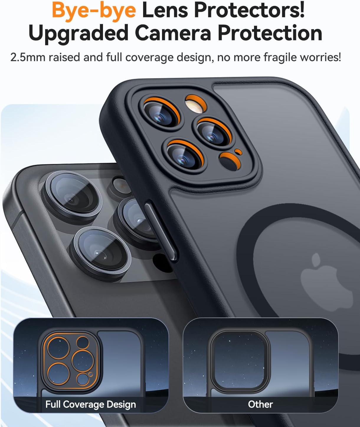 • Подобрена пълна защита на камерата: Кажете сбогом на конвенционалните протектори за обективи! В сравнение с други обикновени калъфи за телефони, нашият калъф за iPhone 15 предлага подобрена цялостна защита за камерата, с 2,5 мм висок ръб около обектива. Той осигурява цялостна защита за обектива, без да прави компромис с фотографията.