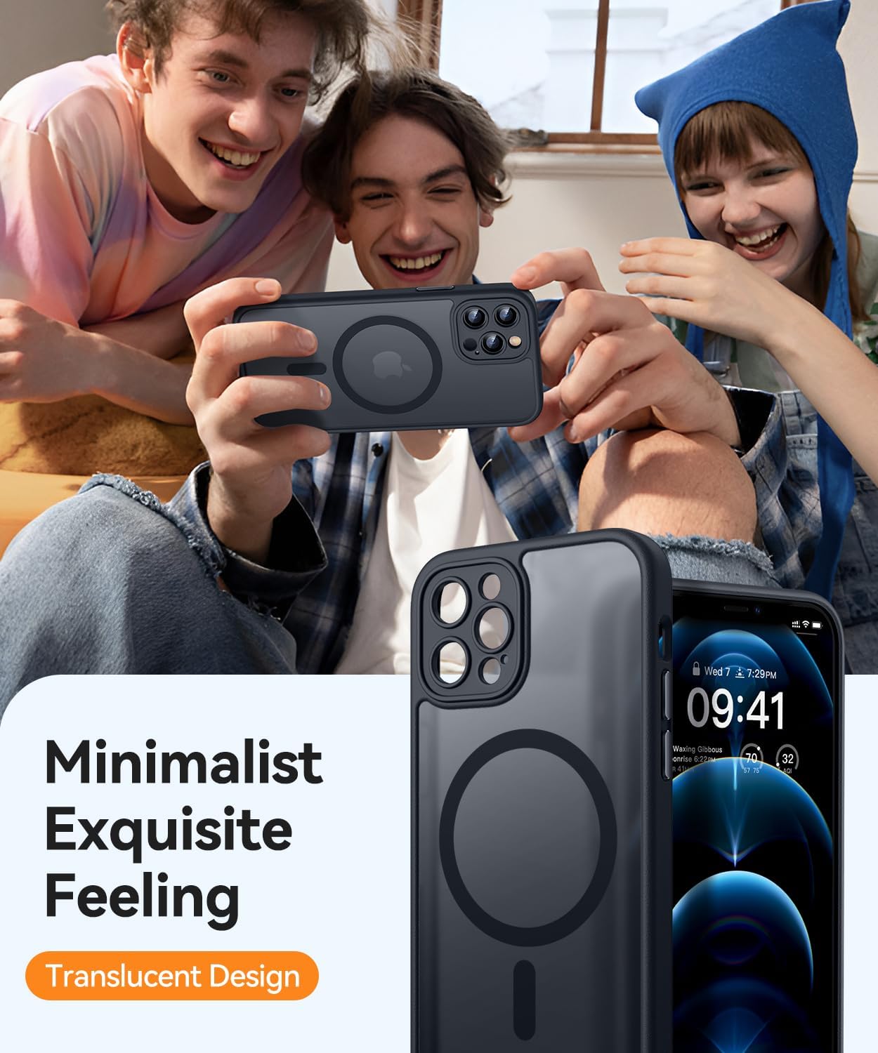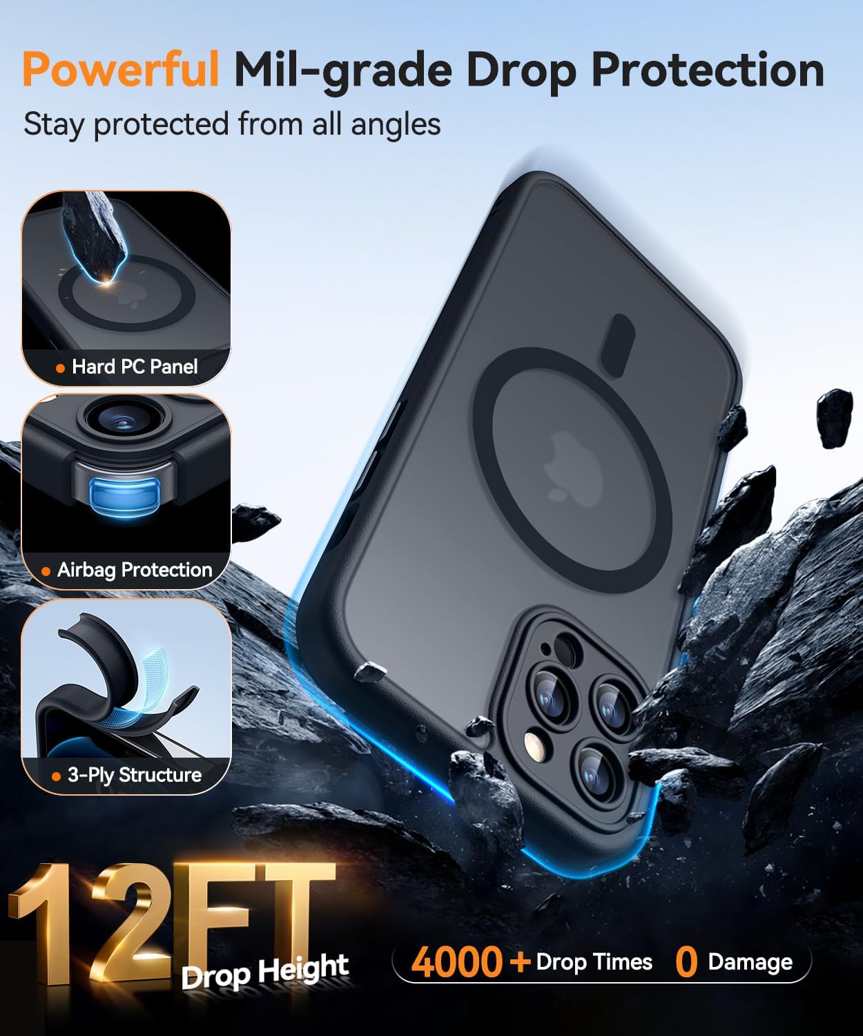 CANSHN Кейс за iPhone 12 Pro със защита на камерата за Magsafe (най-висока военна защита и магнитна сила) Изключително издръжлив кейс за iPhone 12 Pro, удароустойчив, черен