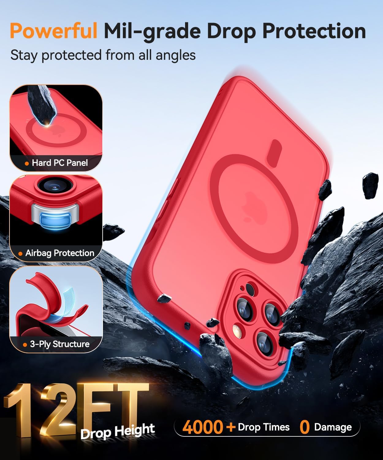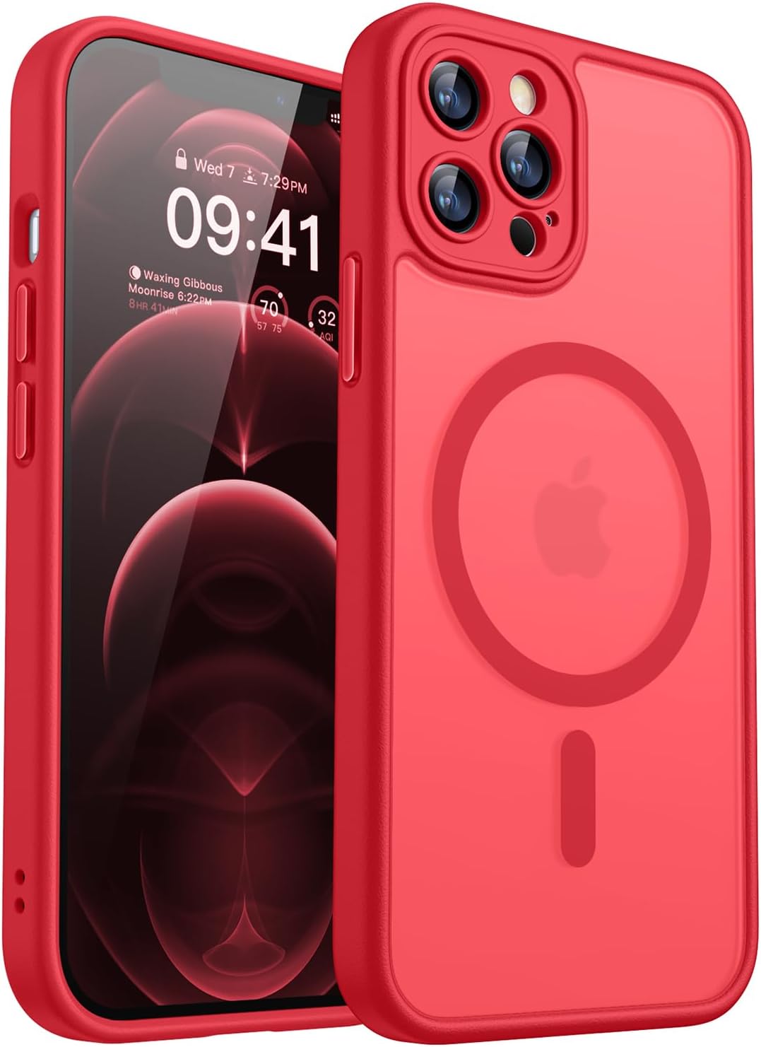 CANSHN Кейс за iPhone 12 Pro със защита на камерата за Magsafe (най-висока военна защита и магнитна сила) Изключително издръжлив кейс за iPhone 12 Pro, удароустойчив, червен