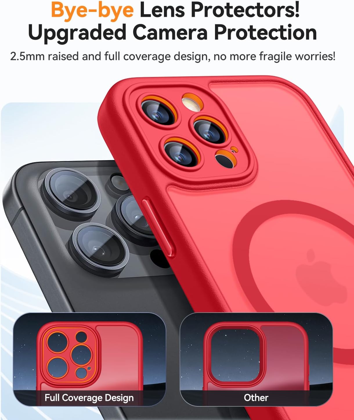 • Подобрена пълна защита на камерата: Кажете сбогом на конвенционалните протектори за обективи! В сравнение с други обикновени калъфи за телефони, нашият калъф за iPhone 15 предлага подобрена цялостна защита за камерата, с 2,5 мм висок ръб около обектива. Той осигурява цялостна защита за обектива, без да прави компромис с фотографията.