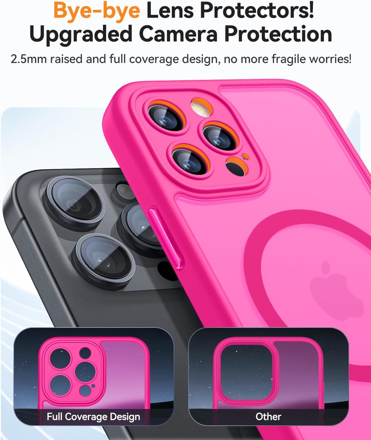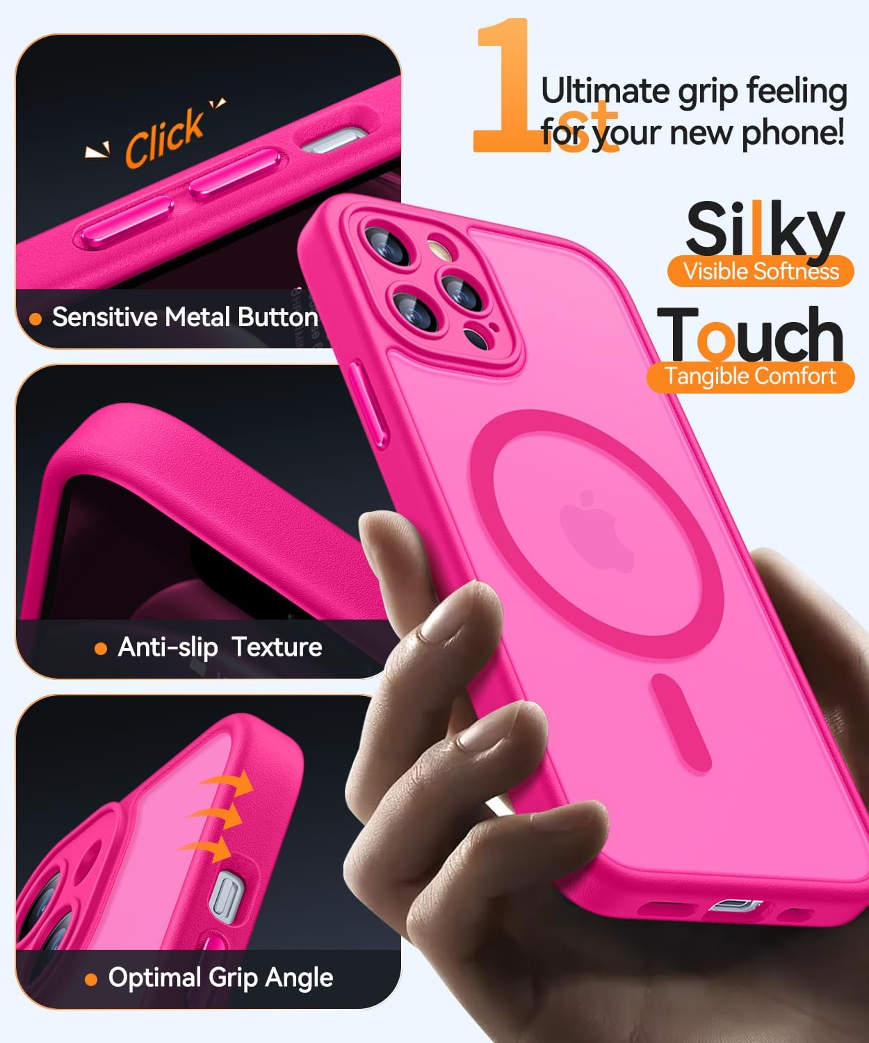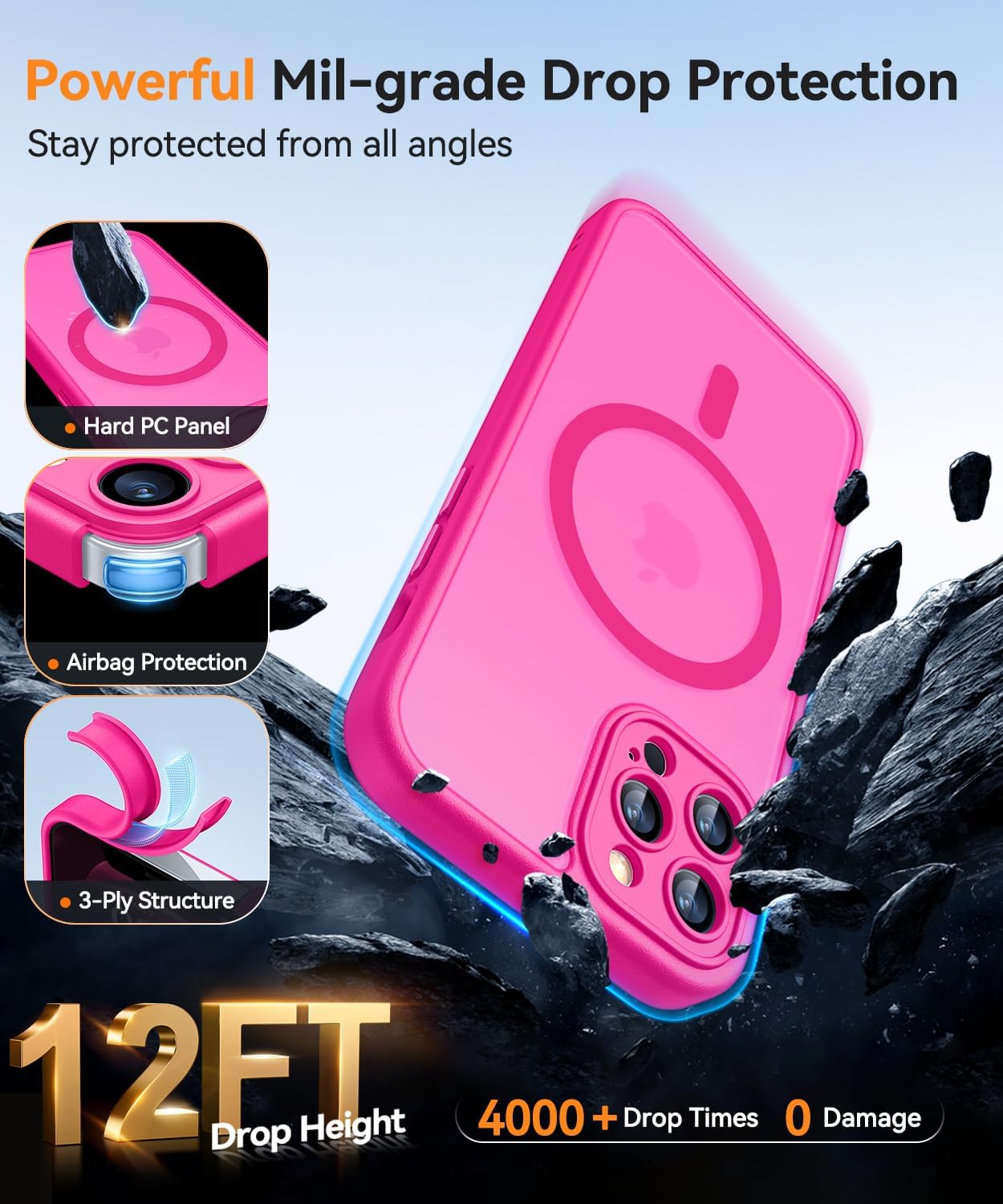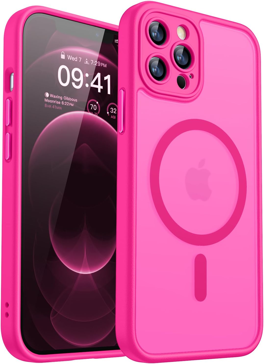 CANSHN Кейс за iPhone 12 Pro със защита на камерата за Magsafe (най-висока военна защита и магнитна сила) Изключително издръжлив кейс за iPhone 12 Pro, удароустойчив, ярко розов