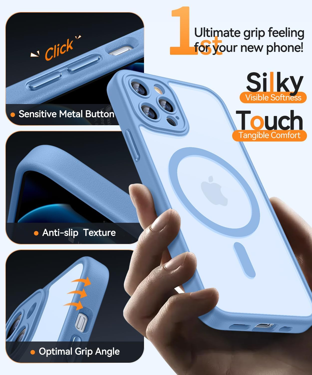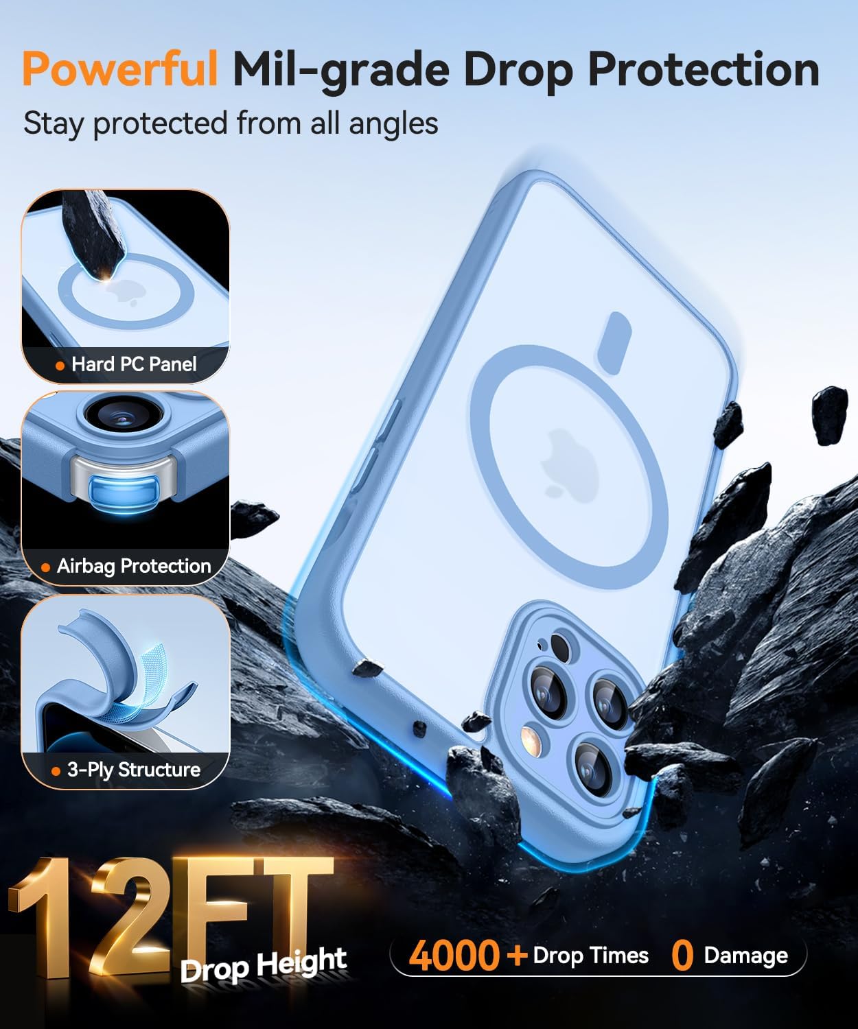 CANSHN Кейс за iPhone 12 Pro със защита на камерата за Magsafe (най-висока военна защита и магнитна сила) Изключително издръжлив кейс за iPhone 12 Pro, удароустойчив, небесно син