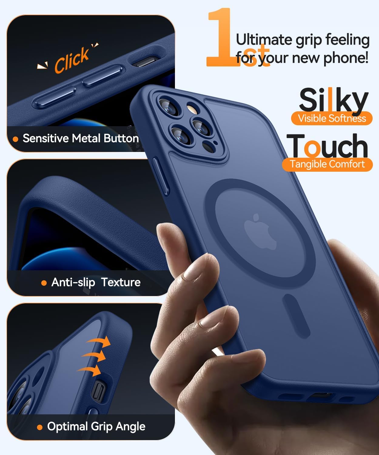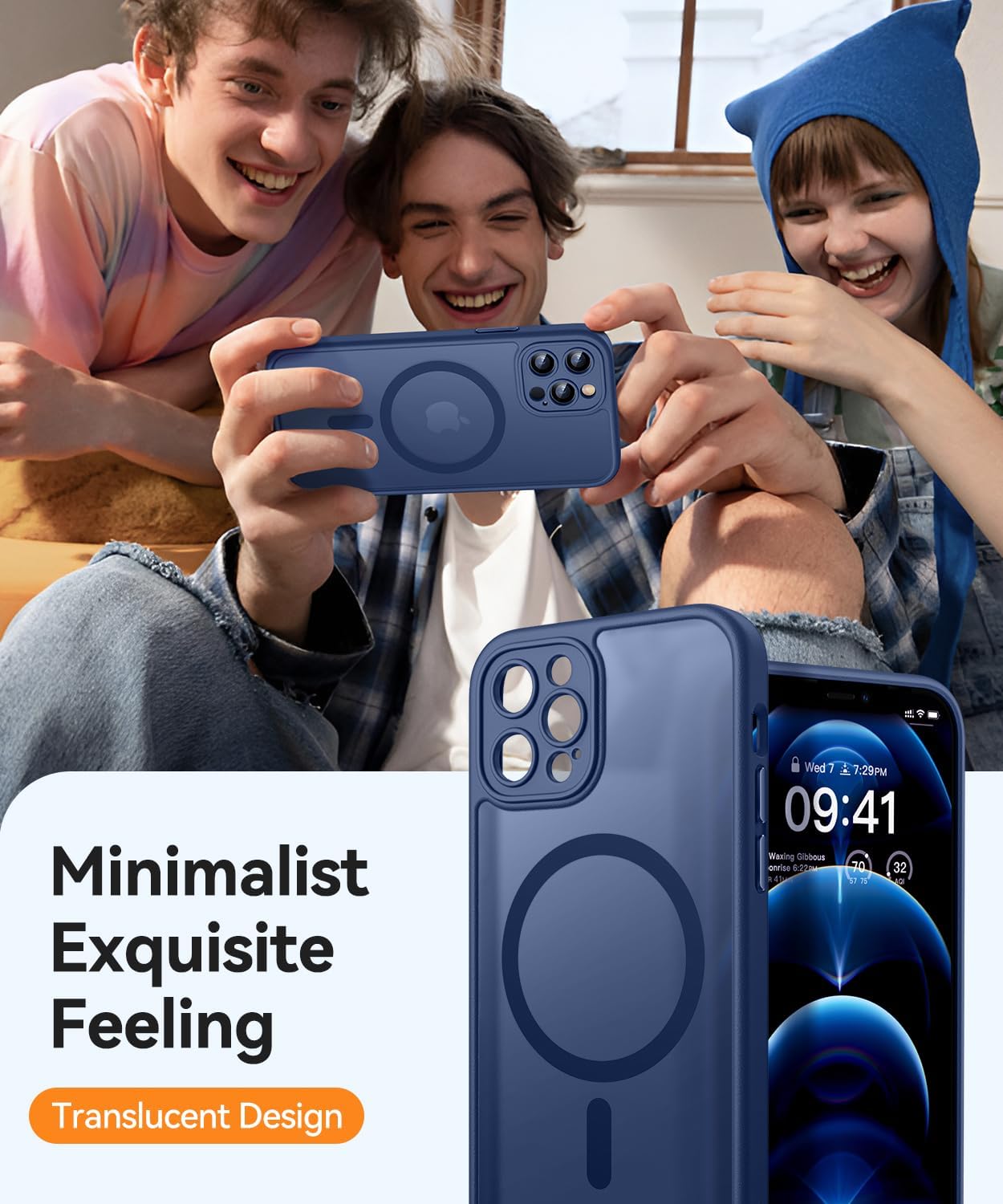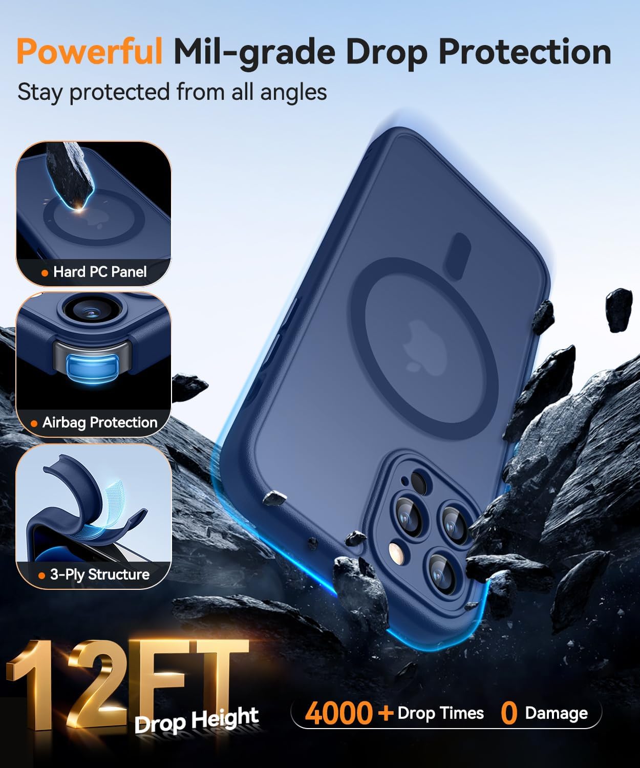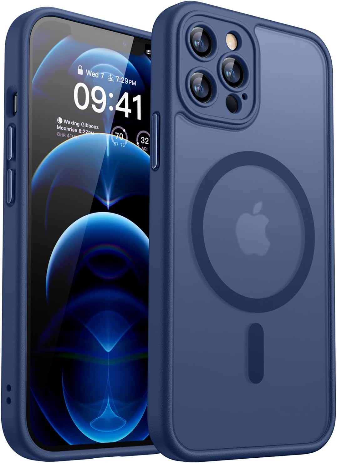 CANSHN Кейс за iPhone 12 Pro със защита на камерата за Magsafe (най-висока военна защита и магнитна сила) Изключително издръжлив кейс за iPhone 12 Pro, удароустойчив, тъмносин