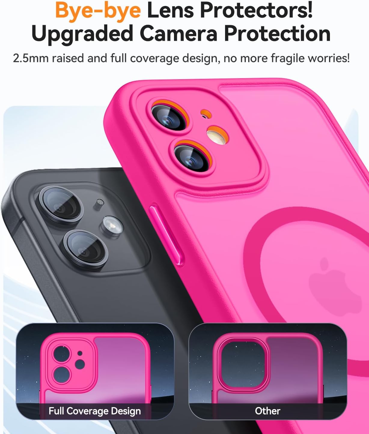 CANSHN Кейс за iPhone 12 със защита на камерата за Magsafe (най-висока военна защита и магнитна сила) Изключително издръжлив кейс за iPhone 12, удароустойчив, ярко розов