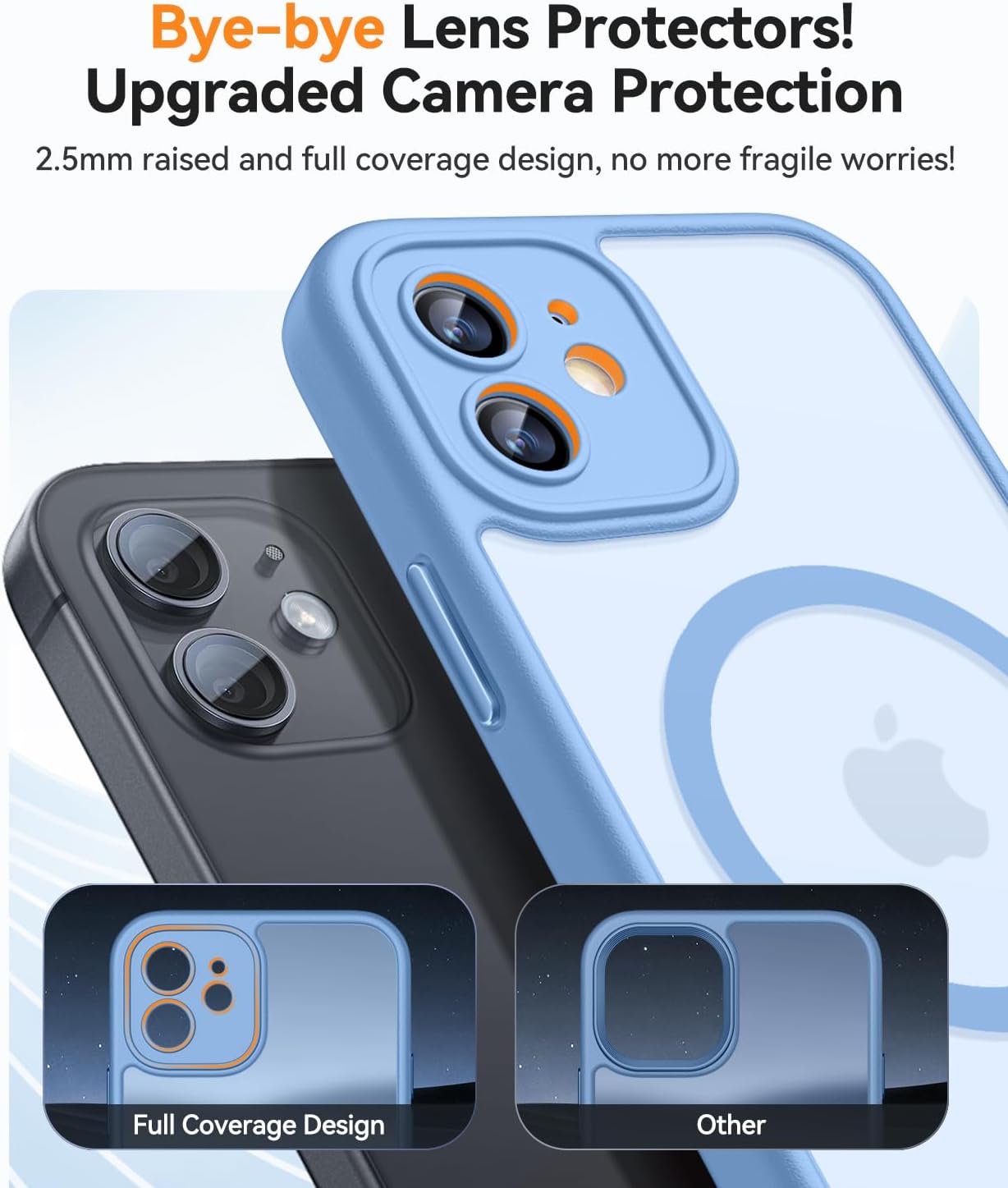 CANSHN Кейс за iPhone 12 със защита на камерата за Magsafe (най-висока военна защита и магнитна сила) Изключително издръжлив кейс за iPhone 12, удароустойчив, небесно син