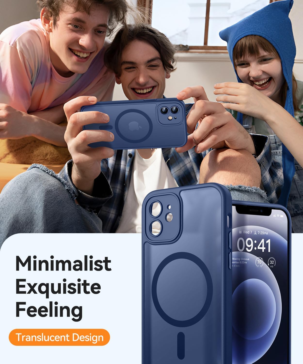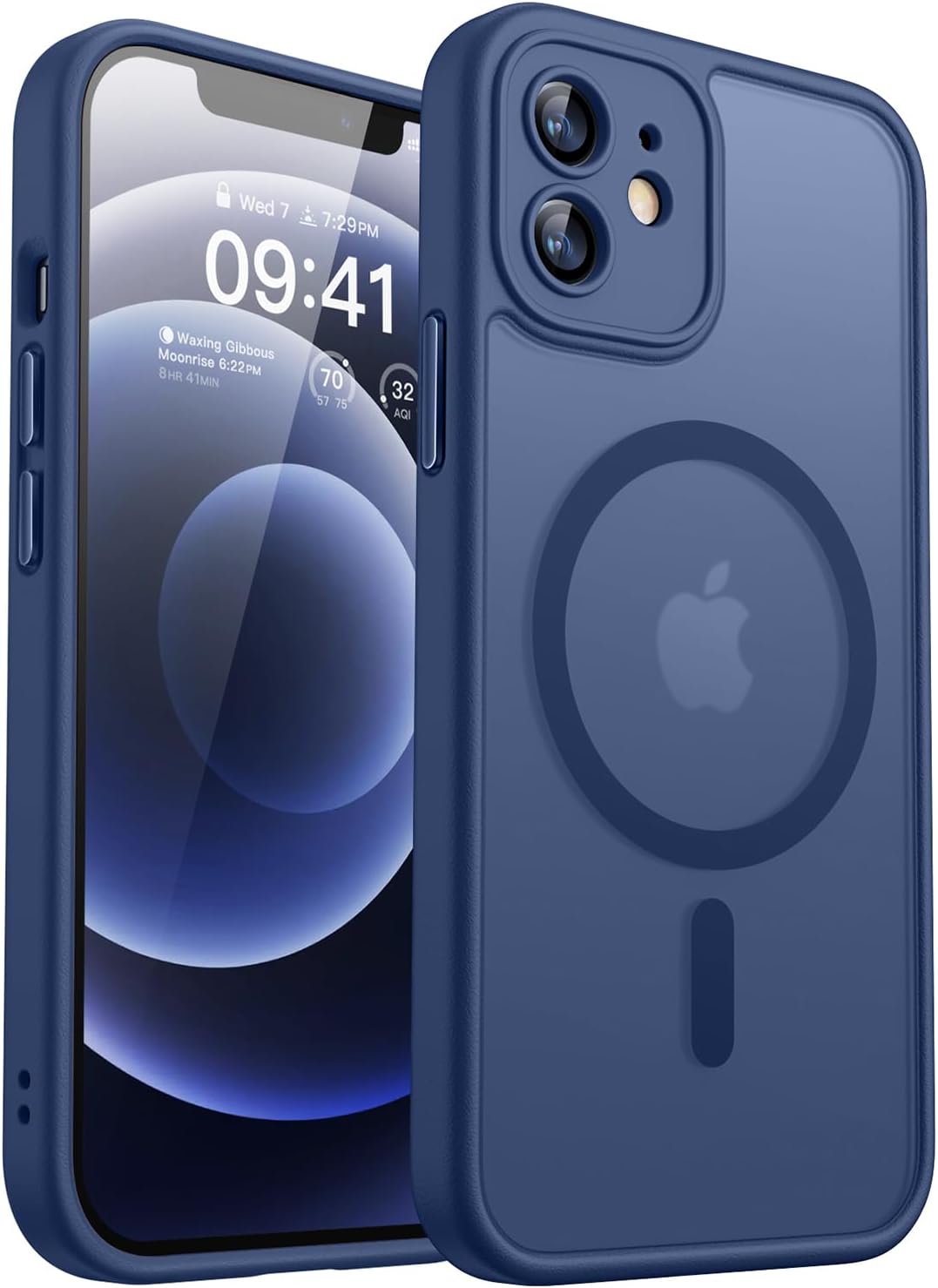 CANSHN Кейс за iPhone 12 със защита на камерата за Magsafe (най-висока военна защита и магнитна сила) Изключително издръжлив кейс за iPhone 12, удароустойчив, тъмносин