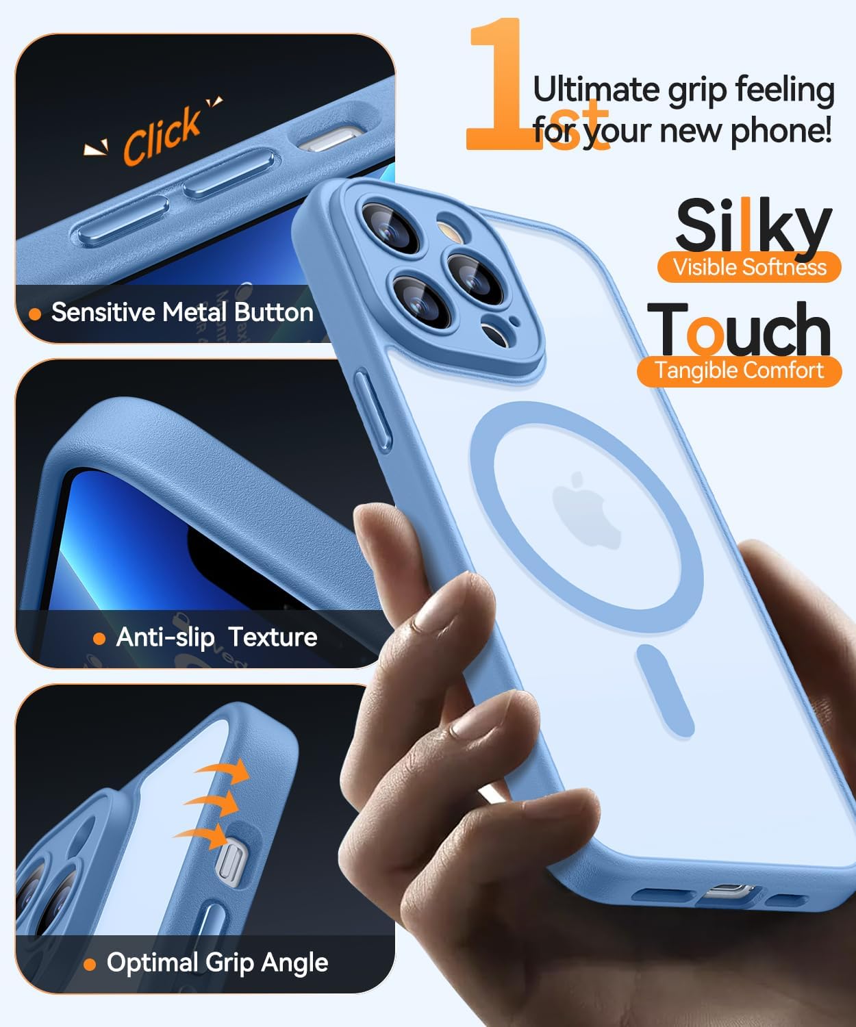 CANSHN Кейс за iPhone 13 Pro със защита на камерата за Magsafe (най-висока военна защита и магнитна сила), изключително издръжлив, удароустойчив калъф, небесно син