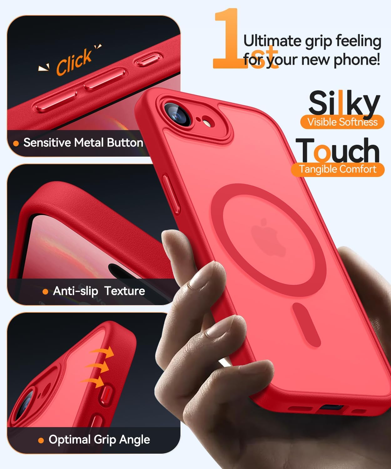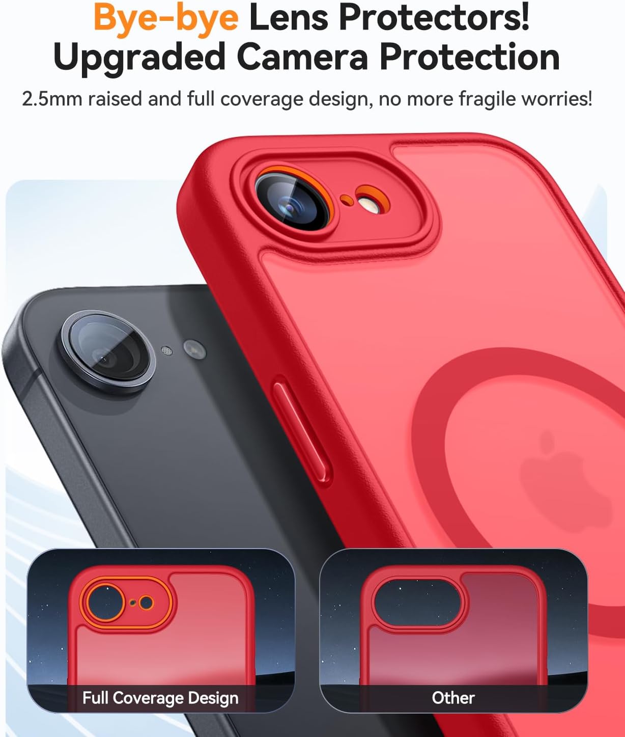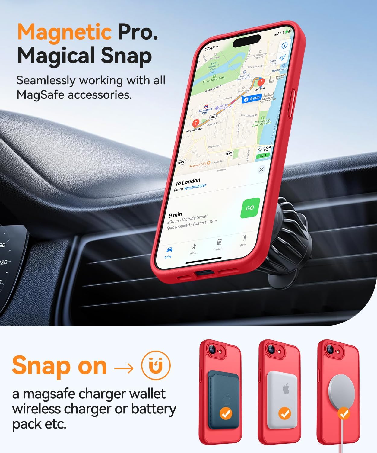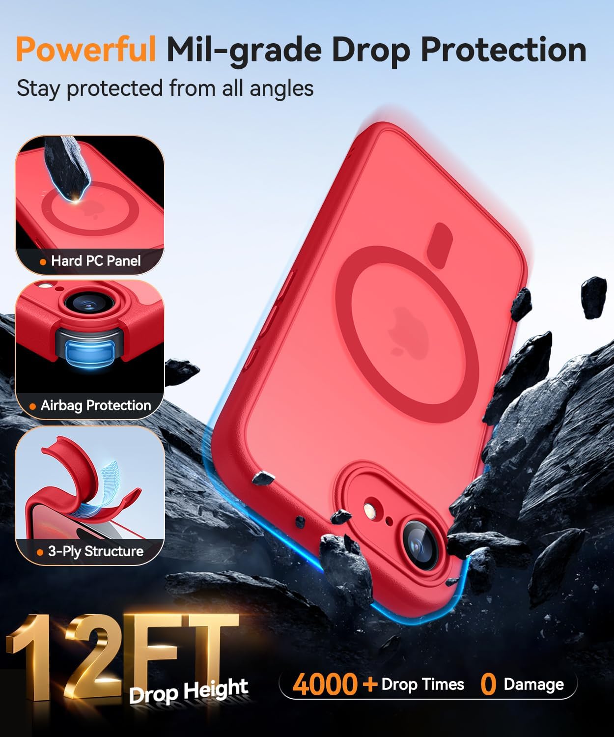 CANSHN Кейс за iPhone 16e с Magsafe (най-добра военна защита и магнитна сила) Изключително издръжлив кейс за iPhone 16e, удароустойчив, червен